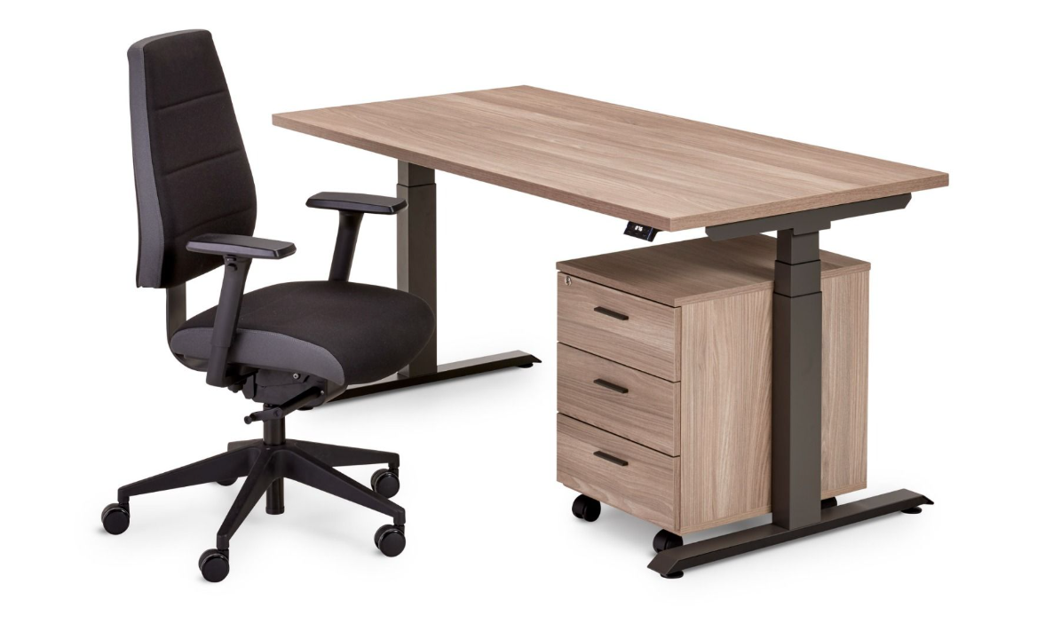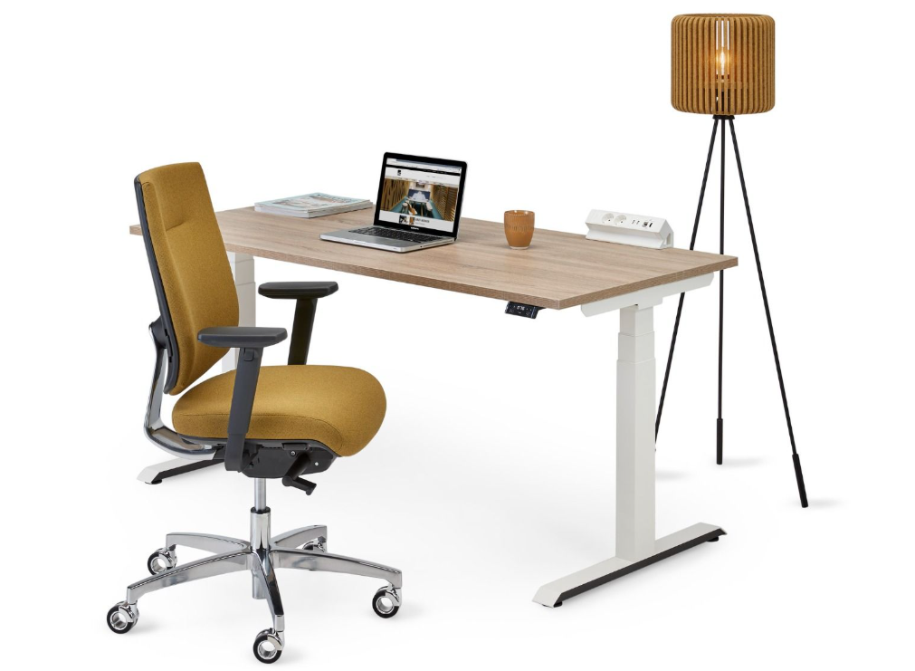 Ergonomisch werken krijgt vorm met de Flex 3+: een elektrische zit-sta werkplek die zich gemakkelijk aanpast aan jouw ritme. Hoogteverstelbaar tussen 64 en 130 cm  (met stille motor)