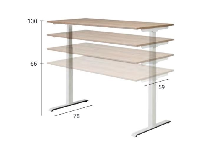 • Hoogteverstelling: elektrisch van 64 tot 130 cm (incl. blad)