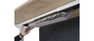De volledige bekabeling en elektronica worden strak weggewerkt in een elegante, gestoffeerde magnetische kabelgoot (niet in standaard) onder het blad of kies optioneel voor een telescopische kabelbak. Zo blijft je werkplek geordend en visueel rustig. Standaard uitgerust met een memory unit met 4 geheugenstanden en een USB-A oplader stel je je ideale werkhoogte in met één druk op de knop én laad je je apparaten makkelijk op.