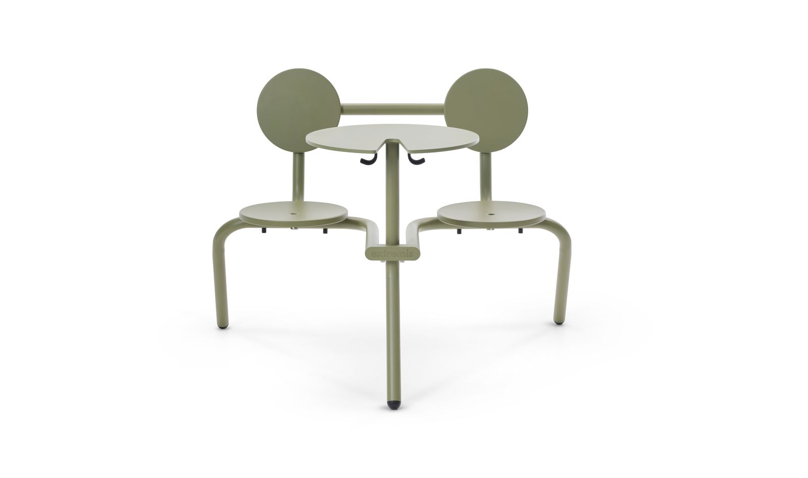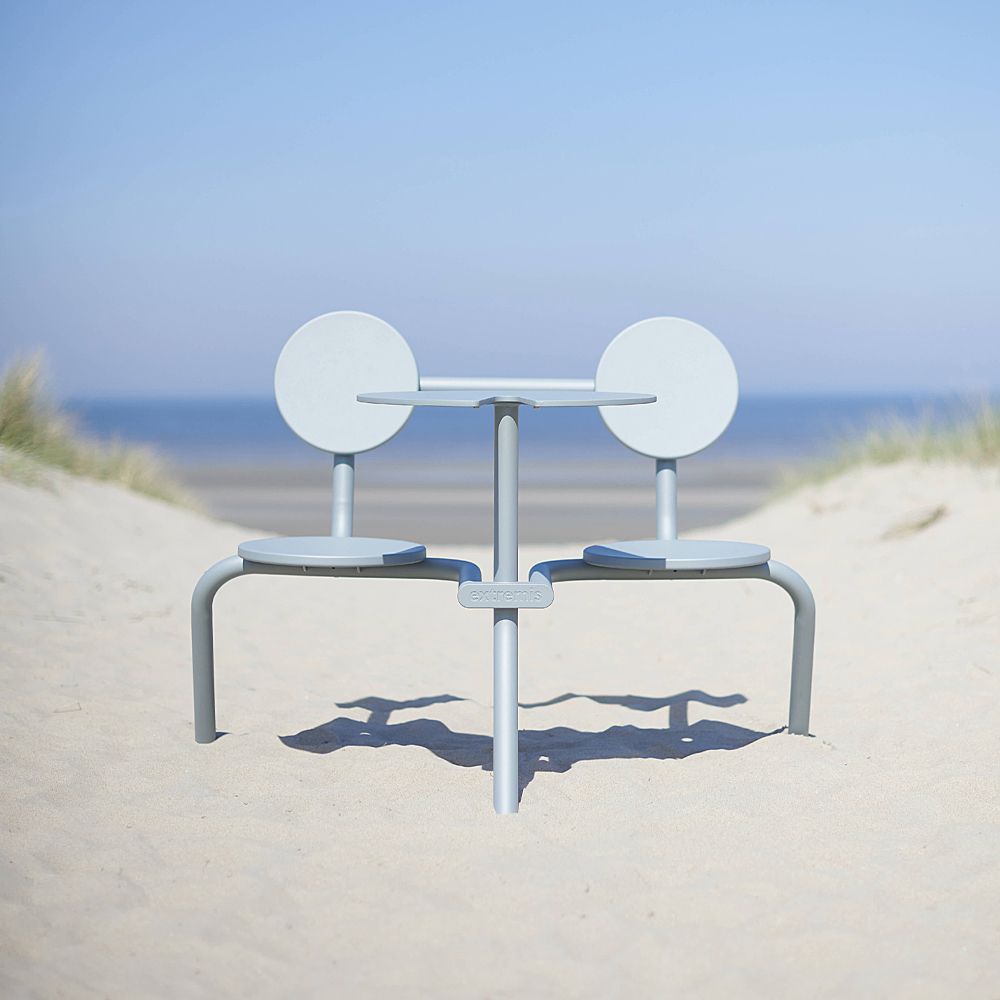 De Bistroo is een innovatieve toevoeging aan de contractmarkt: een praktische, weerbestendige eettafelset voor twee personen. Met zijn slimme ontwerp, bestaande uit drie poten, staat de Bistroo stevig op elk oppervlak. Bovendien kan deze tafel gemakkelijk gestapeld en opgeborgen worden, waardoor het een handige keuze is voor kleine ruimtes. Gestructureerd metaal met poedercoating wordt gecombineerd met handige functies en accessoires, waardoor de Bistroo zich helemaal thuis voelt in het decor van een gezellig restaurantje of op een klein stadsbalkon. Met de mogelijkheid om naast elkaar te zitten en stapelbaar tot vier stuks, biedt de Bistroo een compacte en gezellige oplossing voor kleine ruimtes.