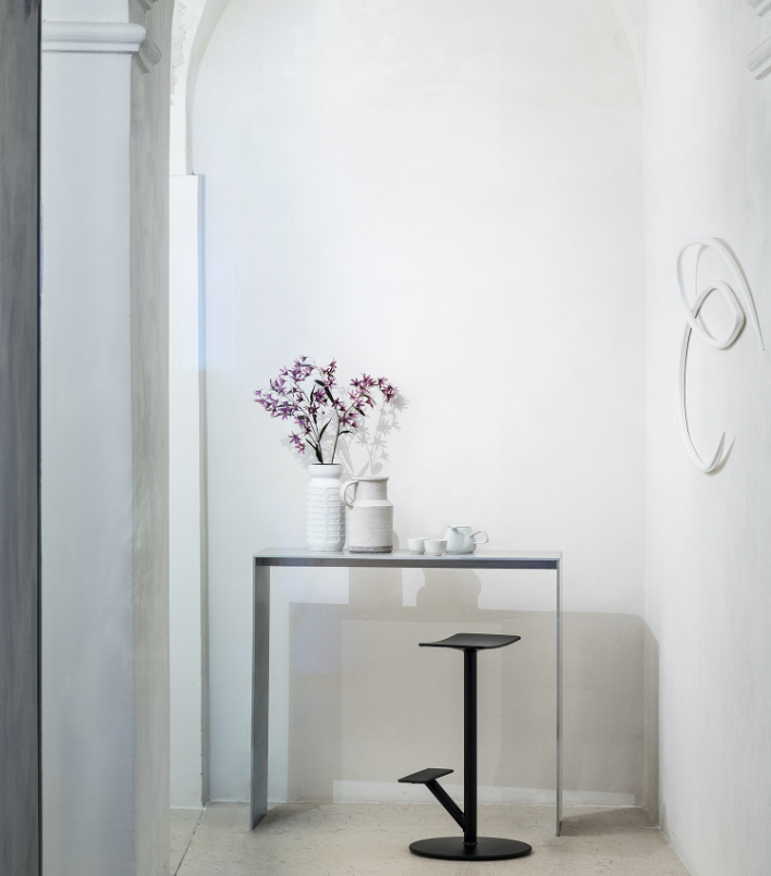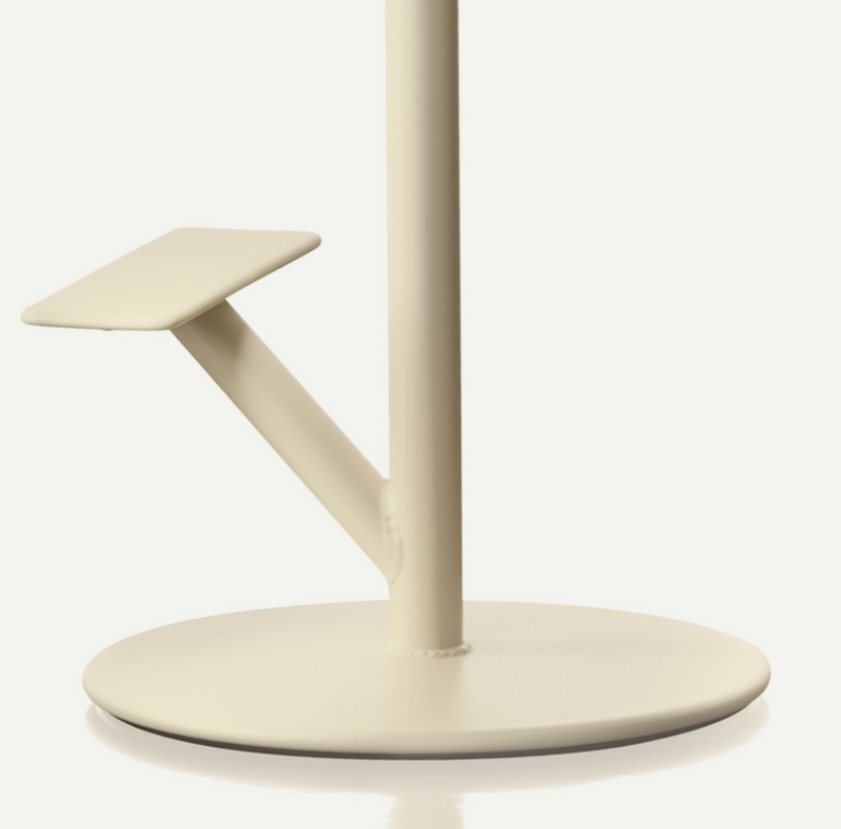 The Sequoia is a striking bar stool in powder-coated steel, designed by Anderssen & Voll. Its clever frame makes it lightweight yet exceptionally stable. The matte ochre finish adds character to any interior. Available in two heights and with an optional upholstered seat cushion in Kvadrat fabric.