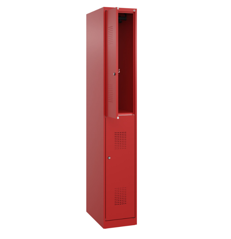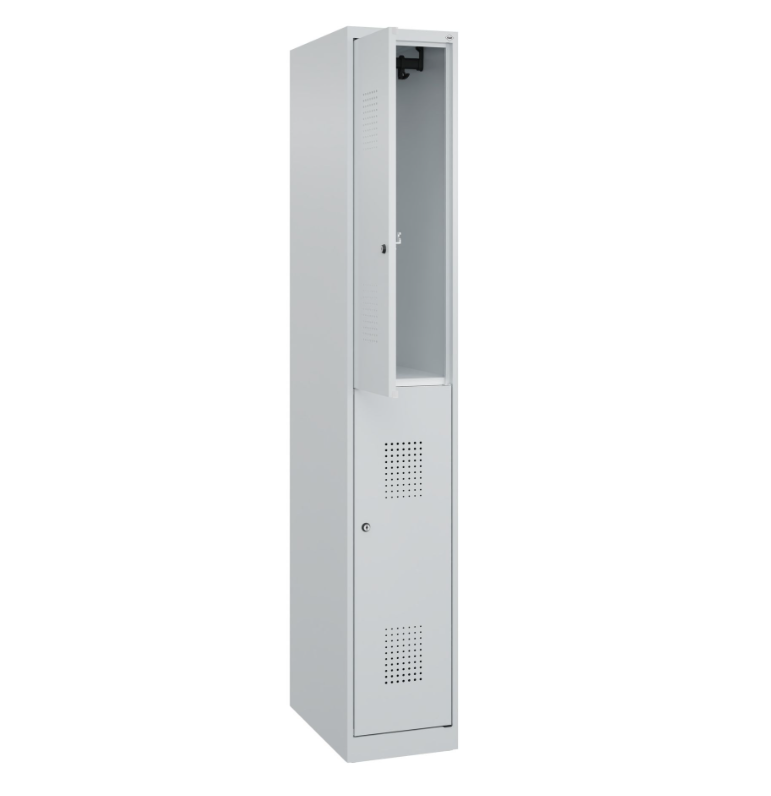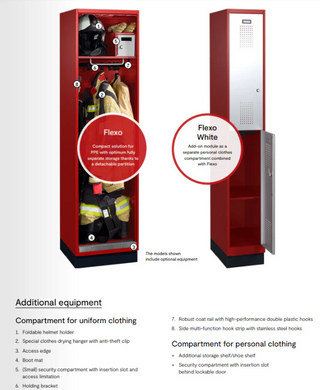 The Flexo cloakroom cabinet is an addition to the Flexo fire brigade cabinet, designed to store personal belongings of volunteers and firefighters safely and in an organised manner. With a width of 30 cm and two separate compartments, this cabinet offers a compact but efficient storage solution.