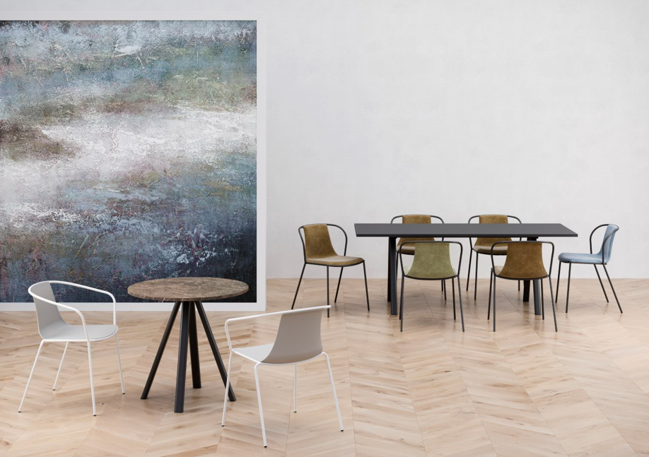 The Kasia collection, with its slim profile, subtly reinforces the idea of ​​comfort and hospitality, even in sophisticated outdoor settings. The metal structure is treated to withstand the elements and combines with the technopolymer finish to provide extra comfort and customization options, suitable for the most demanding contract projects. Stackable and robust, Kasia meets the daily needs of bars, restaurants and hotels, adding a touch of informal elegance to any commercial environment. Kasia Wrap retains its elegant structure and refined shapes, enriched with careful upholstery and upholstery, giving it an attractive and adaptable look in countless combinations. Kasia Wrap is versatile thanks to the different colors, materials and functional combinations.