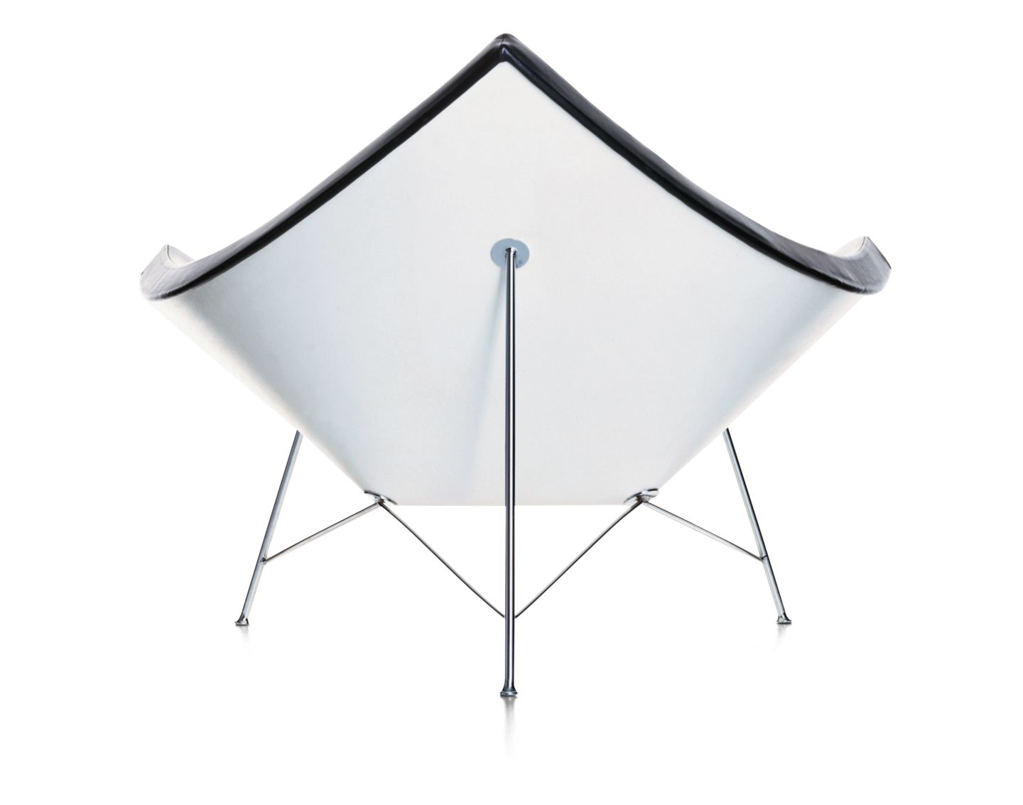 In 1955, George Nelson designed the Coconut Chair, a piece of furniture that he compared to an eighth of a coconut. Nelson, a leading representative of mid-twentieth-century American modernism, gave it the iconic look of a coconut turned inside out. The plastic shell on the outside is white, while the comfortable seat shell is covered with high-quality leather or textile, available in various colors.