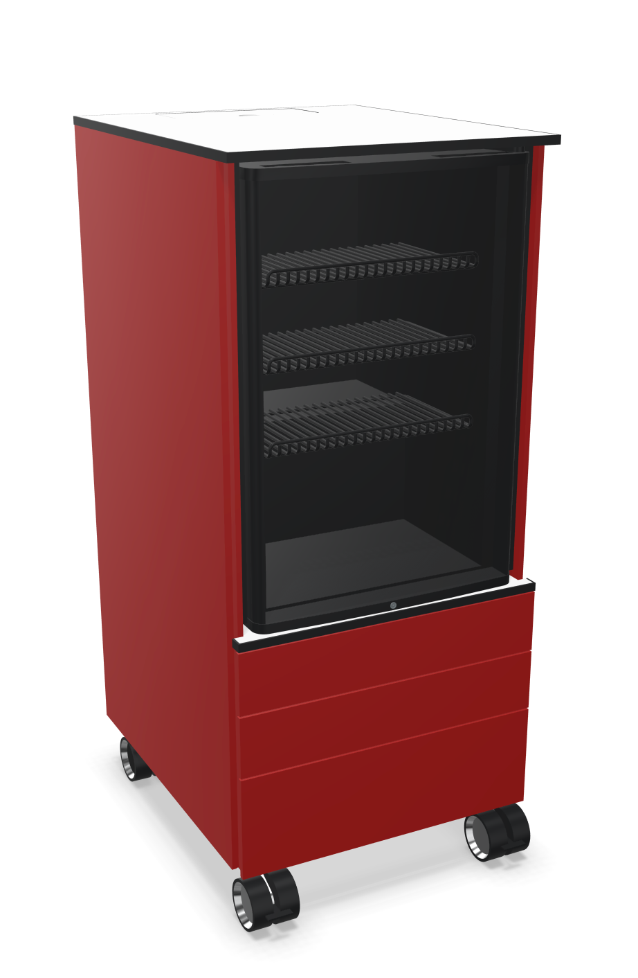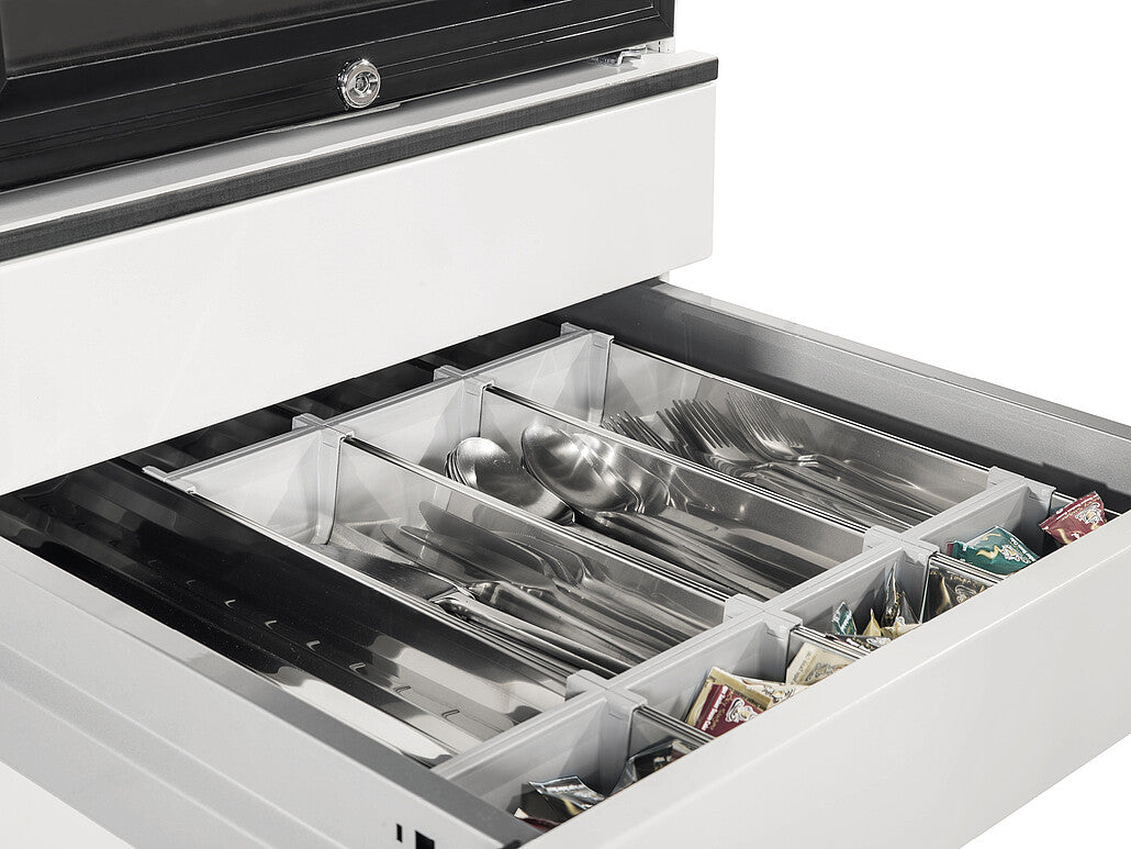 The mobile refrigerator caddies from C + P are a combined catering trolley and refrigerator. They are often used during meetings and conferences. The advantage: even if meetings last a little longer than usual, the refrigerator keeps the drinks cold.