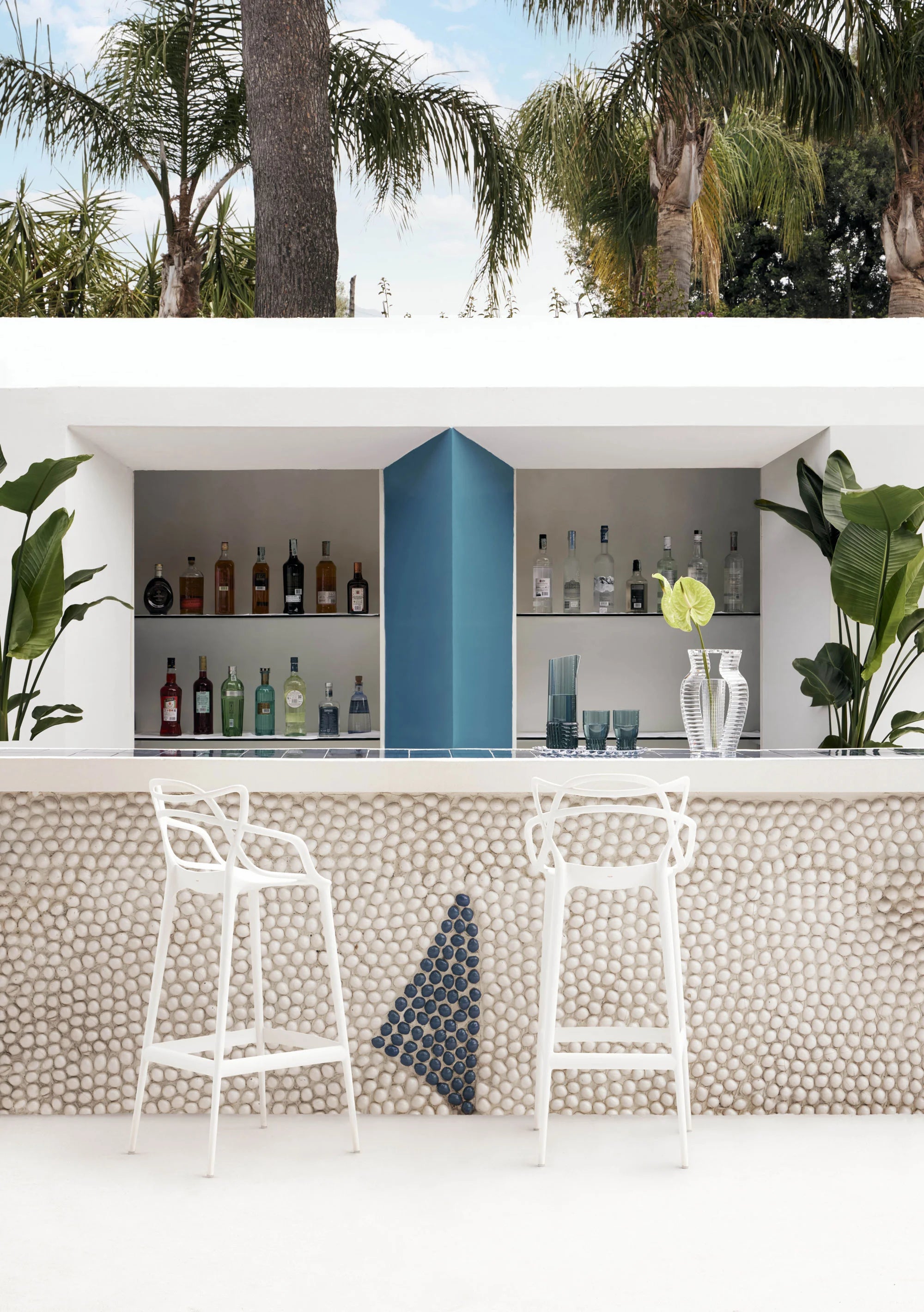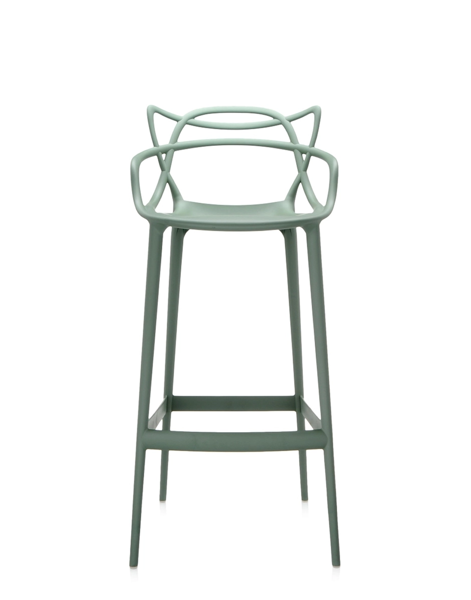 In the Bar chair version of the Masters chair, the legs become longer and the seat becomes more compact, but the unmistakable graphic style of the structure, created by interweaving the silhouettes of three iconic chairs, remains the same. Ideal for both home use and commercial purposes, the Masters stool is also perfect for outdoor use.