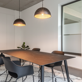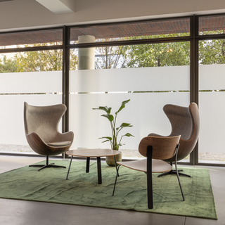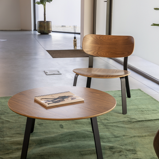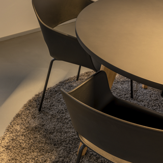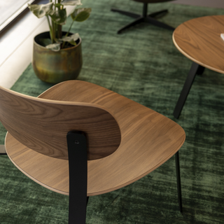 A cozy seating area was created with the Cruso Springback Lounge Chair and the round Lounge table. Both designed by Keiji Takeuchi. It combines aesthetics with comfort. The design is beautiful and warm: a combination of walnut and black.