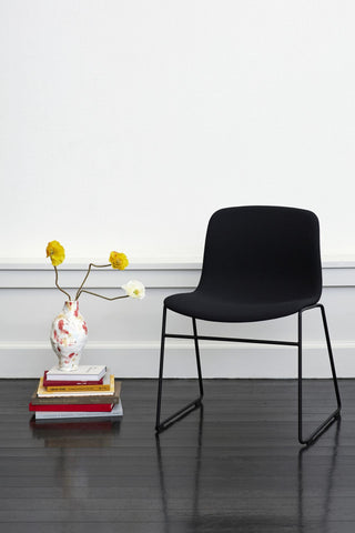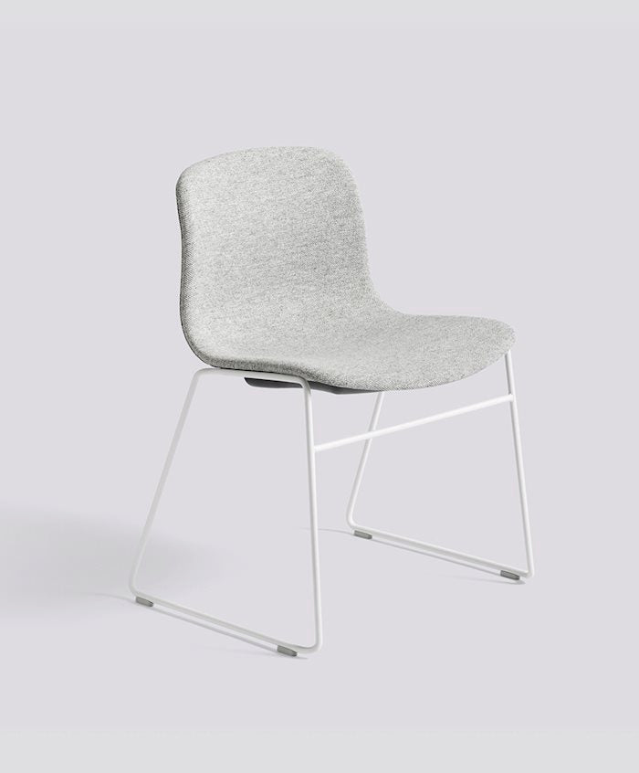About A Chair AAC 09 offers an open frame that makes the intuitive design even more airy. Its upright but rounded shell combines functional stackability with great comfort and an inviting expression. The open sled frame is available in stainless steel or powder-coated, while the shell is available in various colors and upholstery options, allowing for a multitude of design combinations that make this series so versatile.