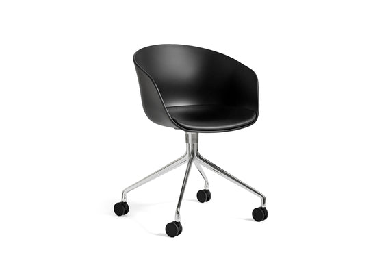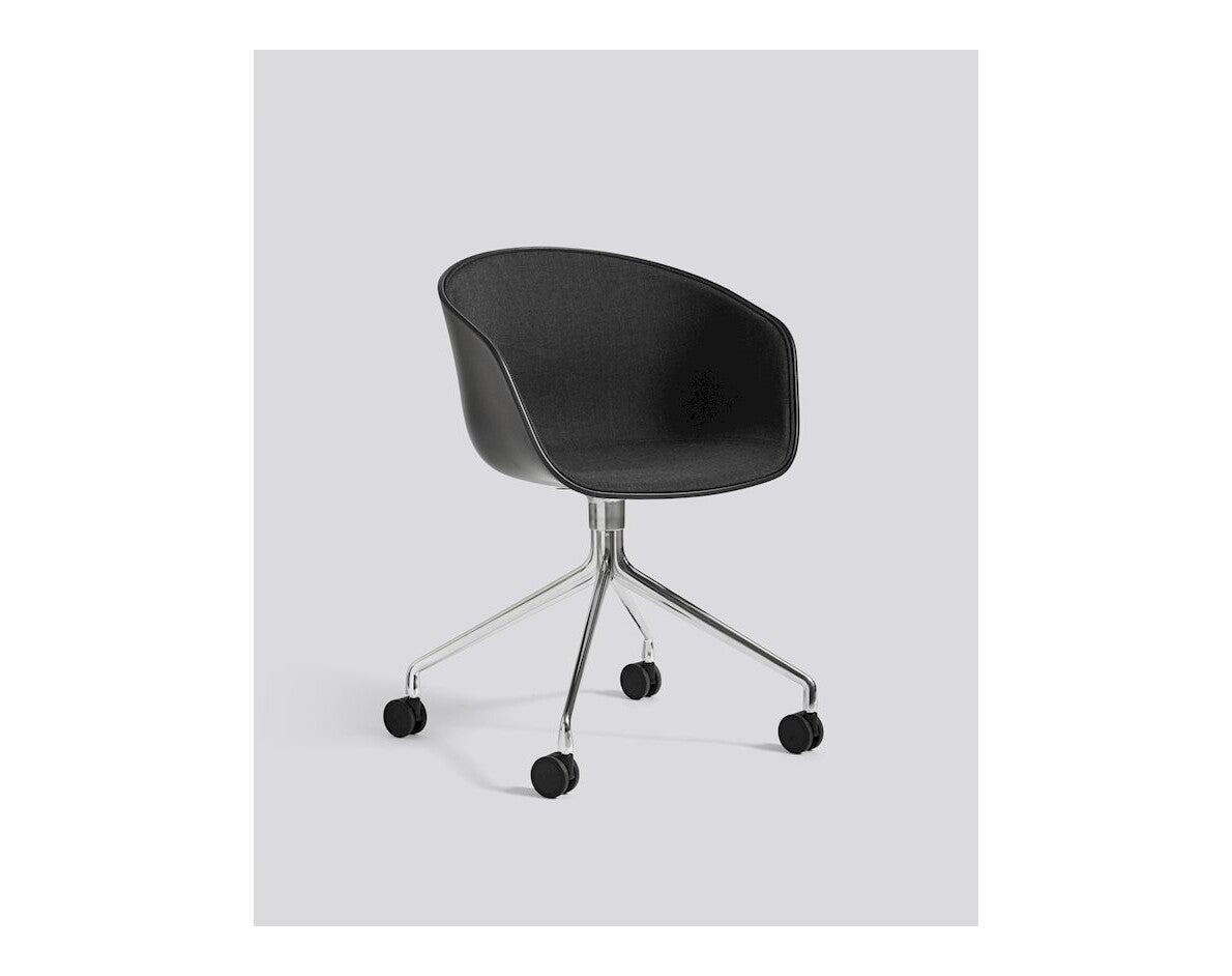 The solid, rounded shell and uniform silhouette of the About AAC chair AAC 24 adds executive heft and a warm, welcoming feel to the otherwise functional and technical genre of office chairs. The stylish, functional design combined with the elegant four-star chassis makes it perfect for formal or official environments and home workplaces. The polypropylene shell is available in a wide range of color and upholstery options and the base is available in different finishes.