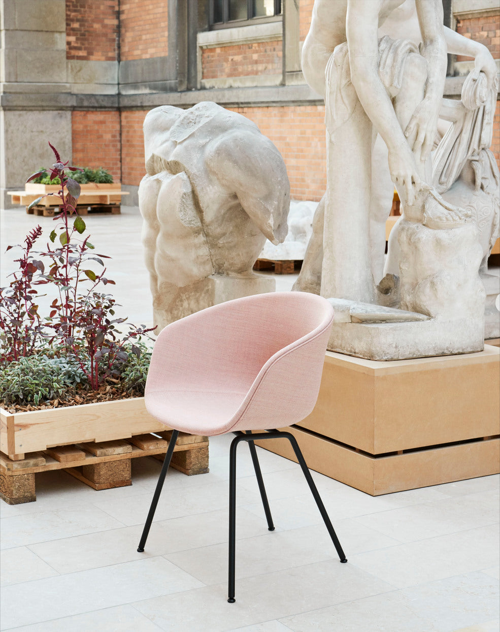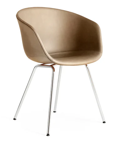 AAC 27 has a 4-legged base in polished or powder-coated steel, which gives the chair a more formal look. The seat is available in different upholstery.