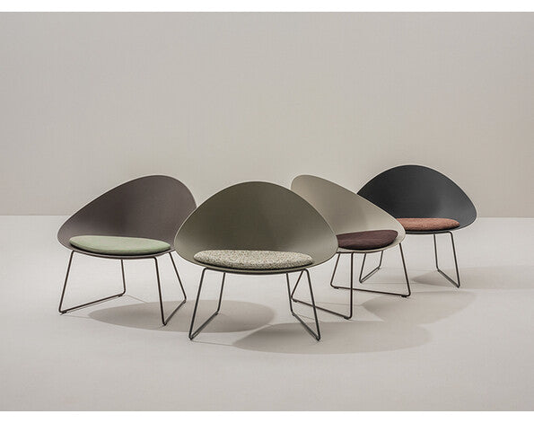 - A seat cushion and a front cushion - both upholstered in fabric, leather, imitation leather or a cover of the customer's choice - are available in combination with the chairs, which have visible plastic shells