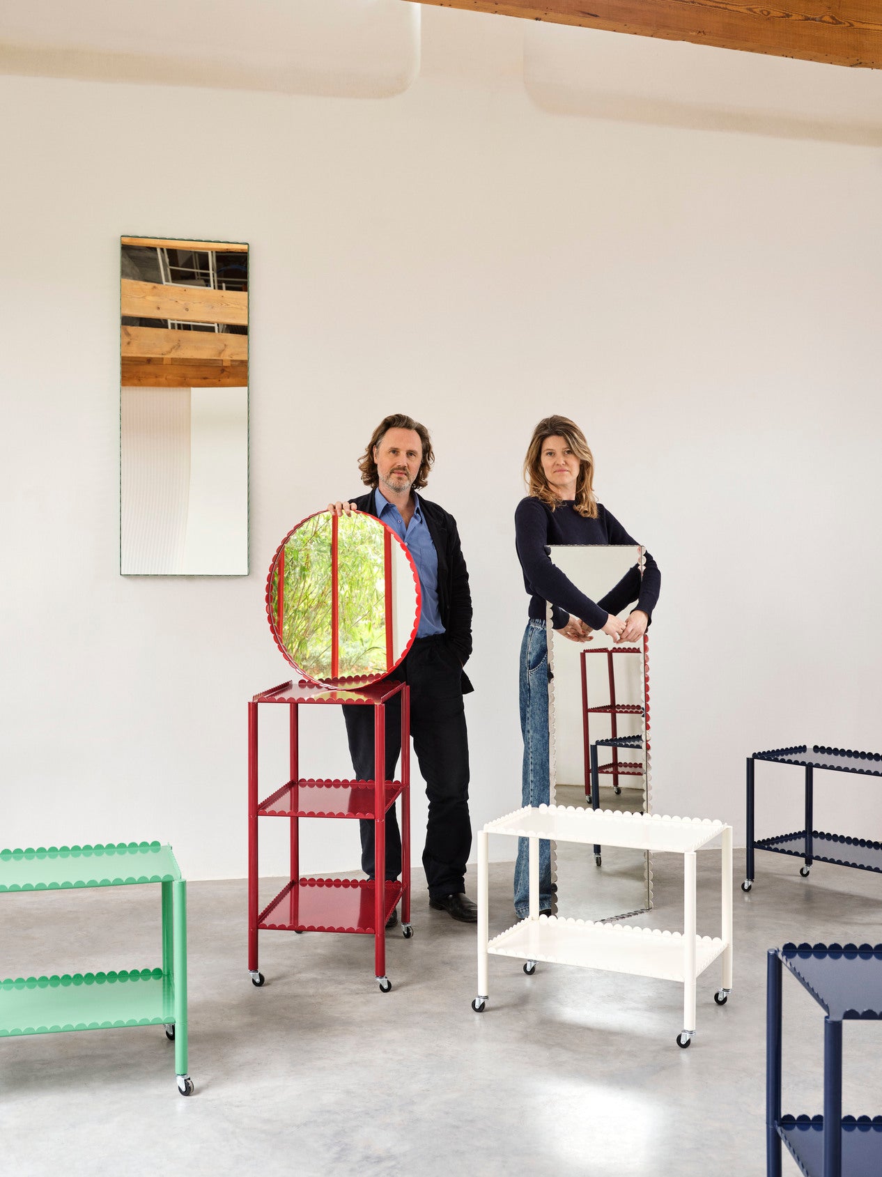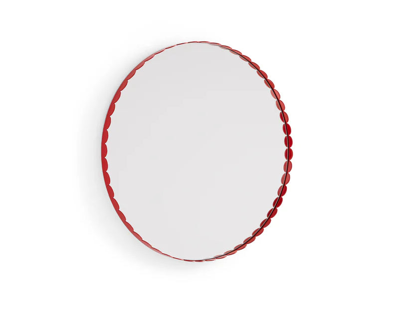 Designed by Belgian duo Muller Van Severen, the Arcs Mirror is formed by a coherent chain of vertical arcs that frame the mirror, creating an elegant, ruffled edge. Made from stainless steel with a mirror finish and powder-coated steel in various colours, it is available in various sizes and shapes, ranging from a small round mirror to a large rectangular mirror, making it suitable for all rooms and applications. Add a touch of sophistication and versatility to any space with the Arcs Mirror.