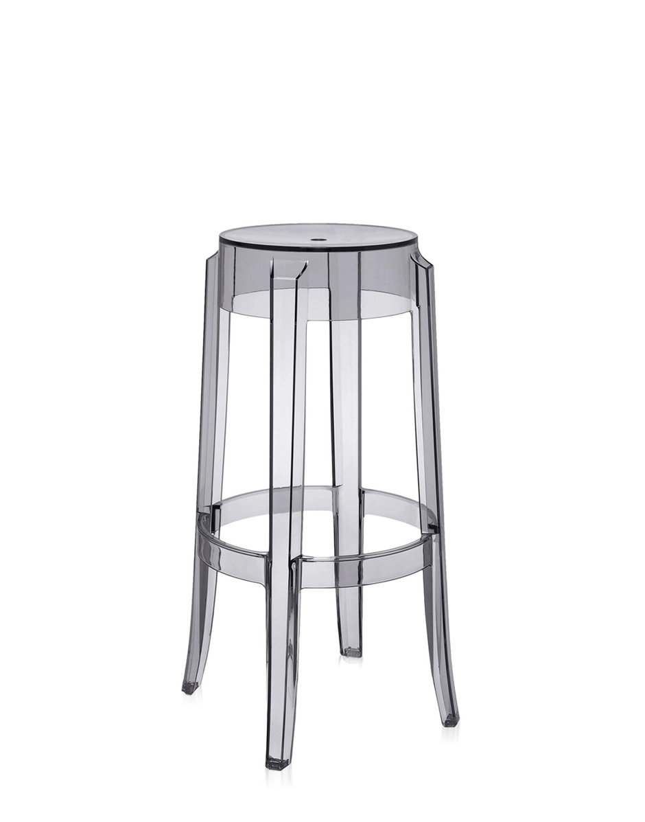 Charles Ghost is the stool that reflects the shape of traditional 19th century chairs. The line of the leg is rounded and slightly curled, an icon of the classic stool. It is available in three different heights: from the stool for occasional, informal sitting to the stool for the kitchen counter or bar. It adapts to both indoor and outdoor environments.