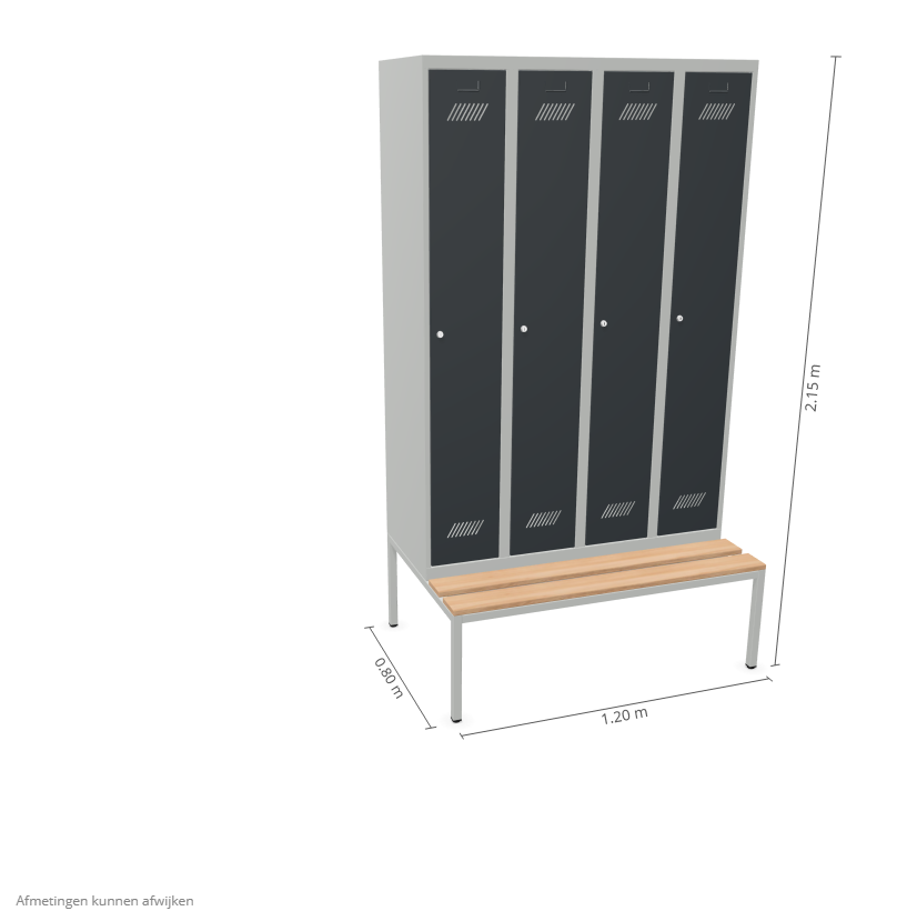 This sturdy steel wardrobe from Pavoy combines German quality with practical details for everyday use. Ideal for changing rooms, sports facilities, or workplaces where order, clarity, and comfort matter. Each wardrobe features an integrated bench with durable beechwood seating slats (115 x 20 mm) for comfortable seating while changing.