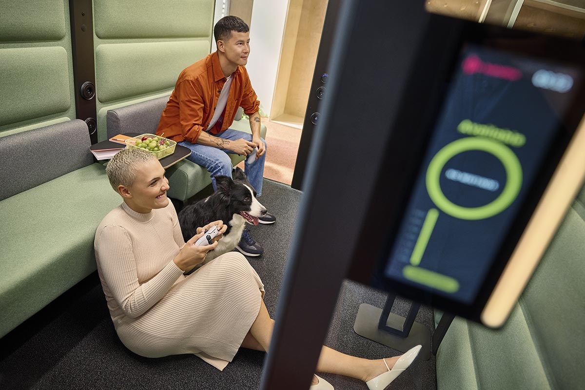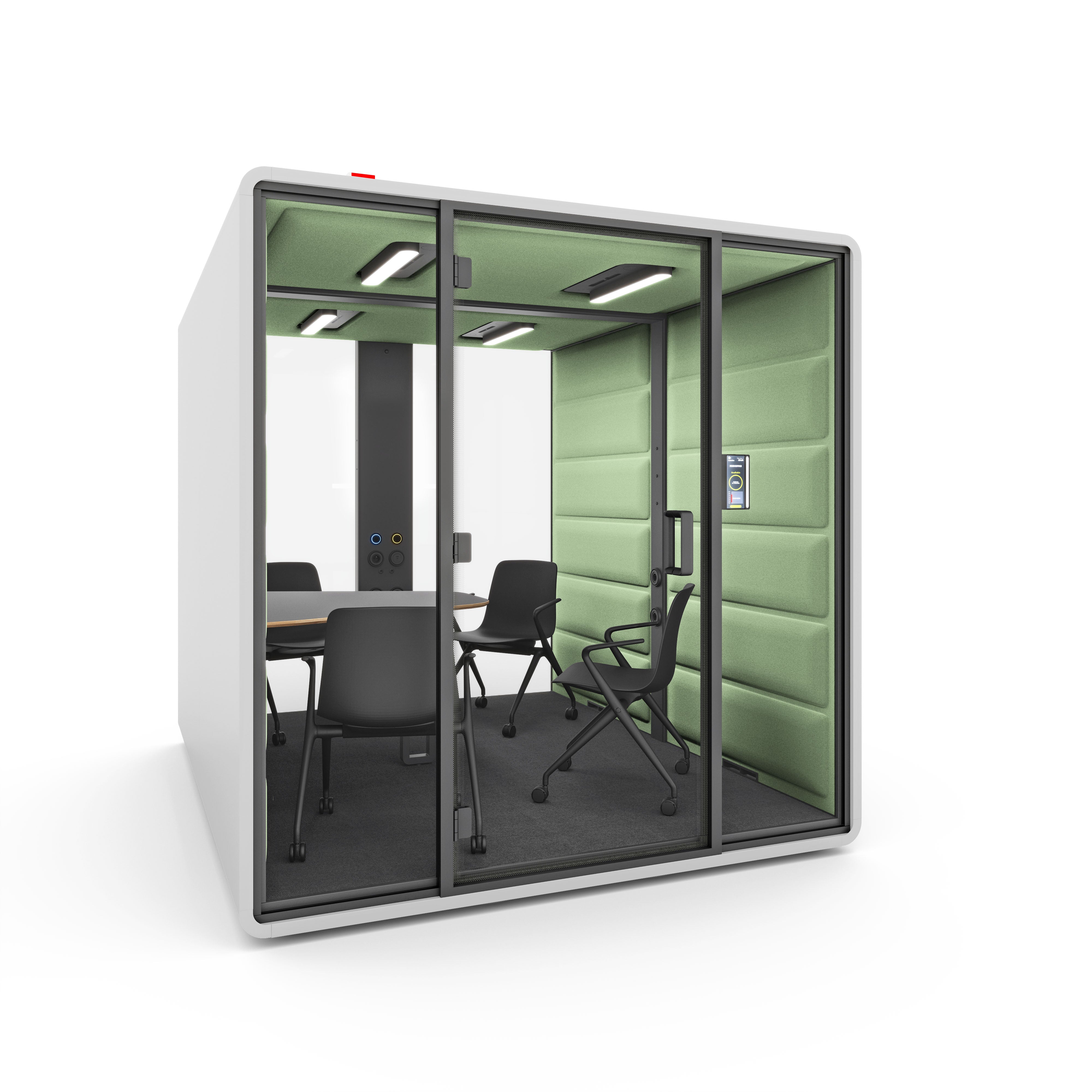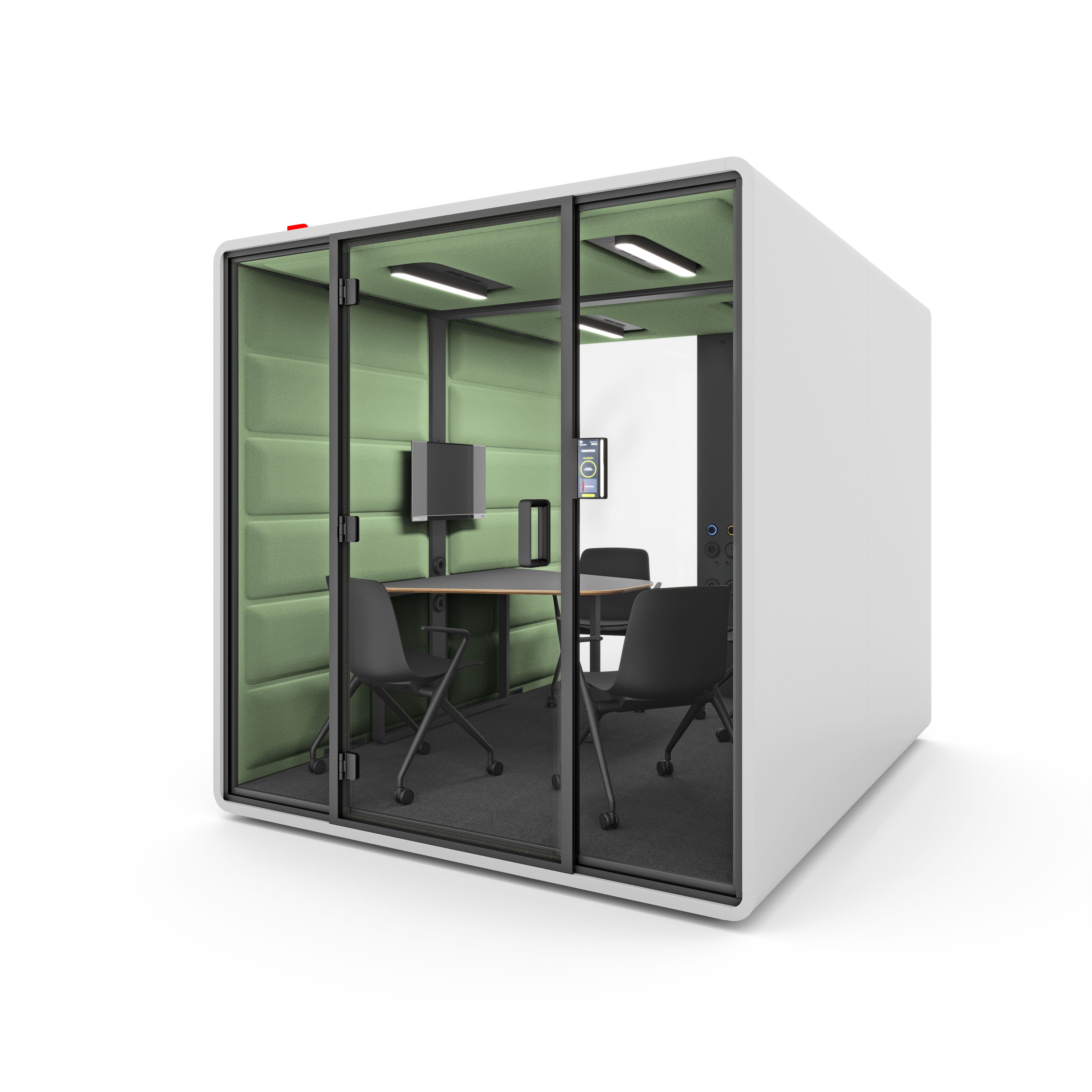 HushFree.L is a large acoustic booth and a smart alternative to traditional meeting rooms. It works perfectly for business meetings, presentations, video conferences with larger teams, or collaborative sessions – both on-site and online.