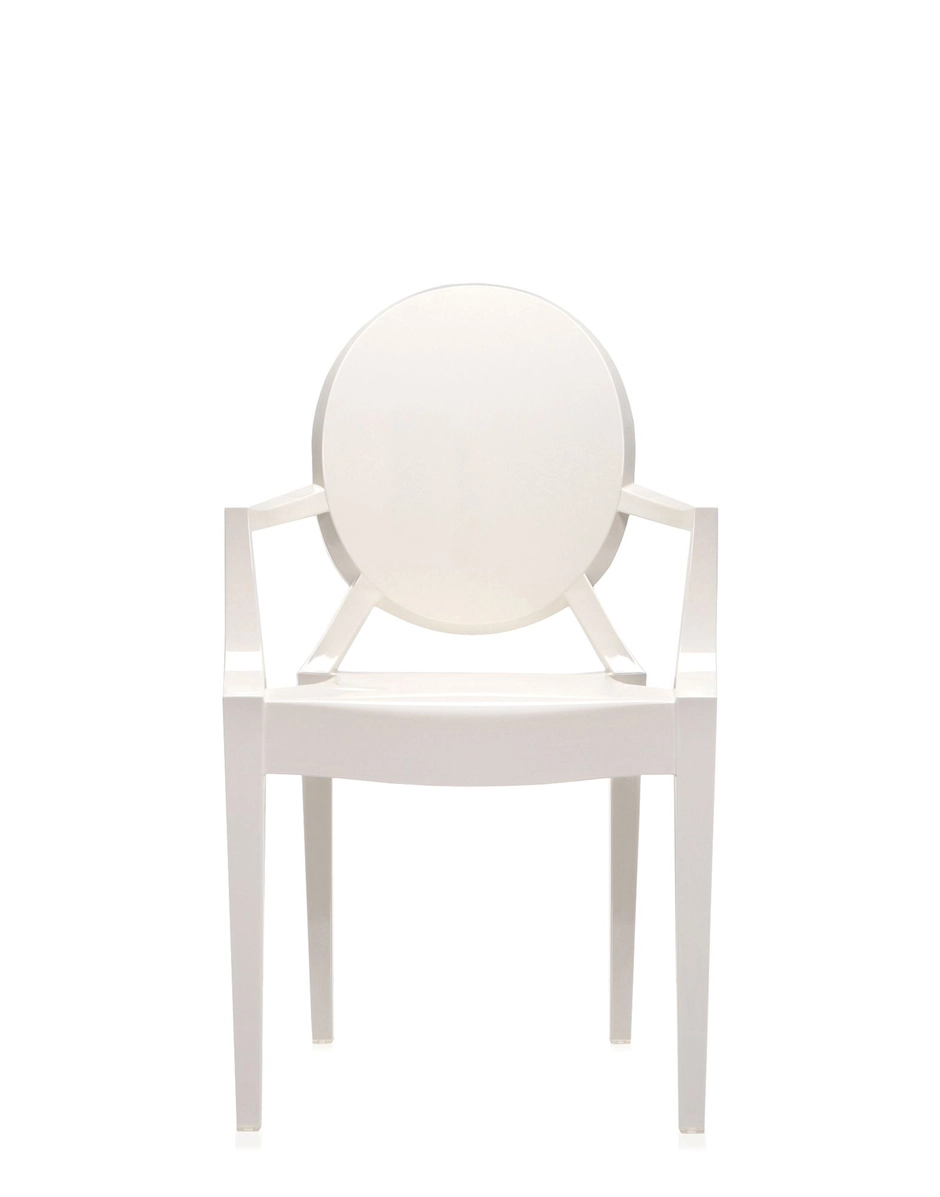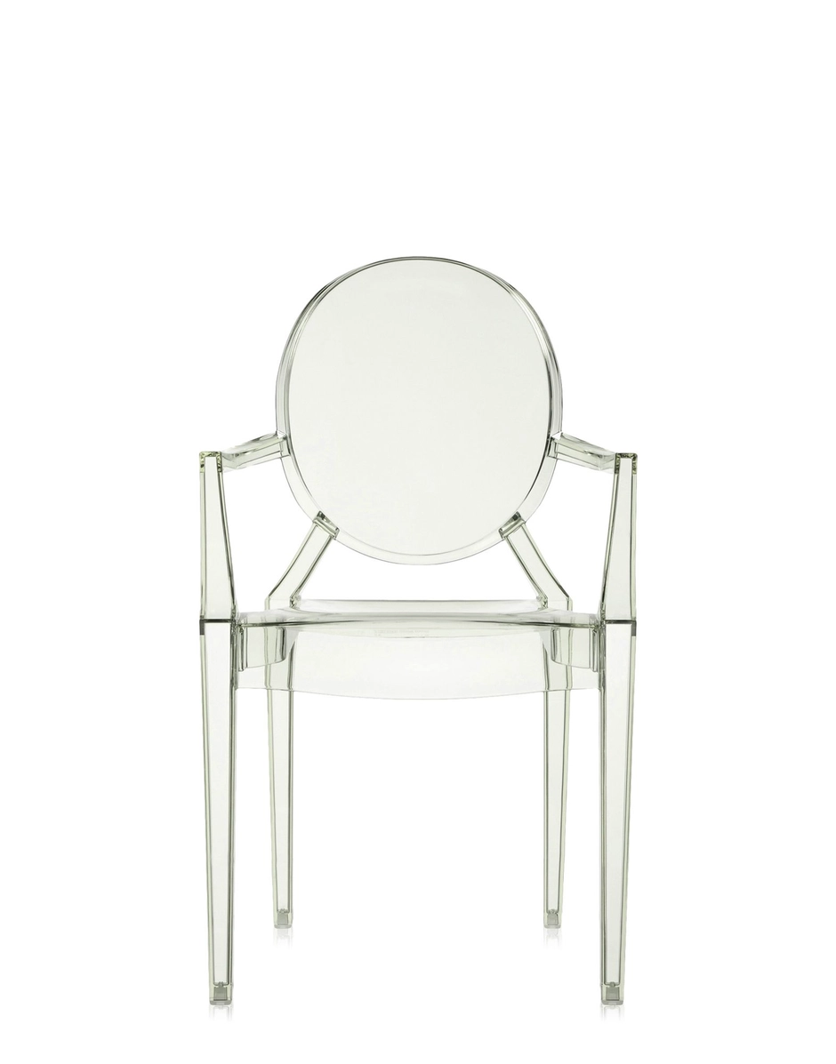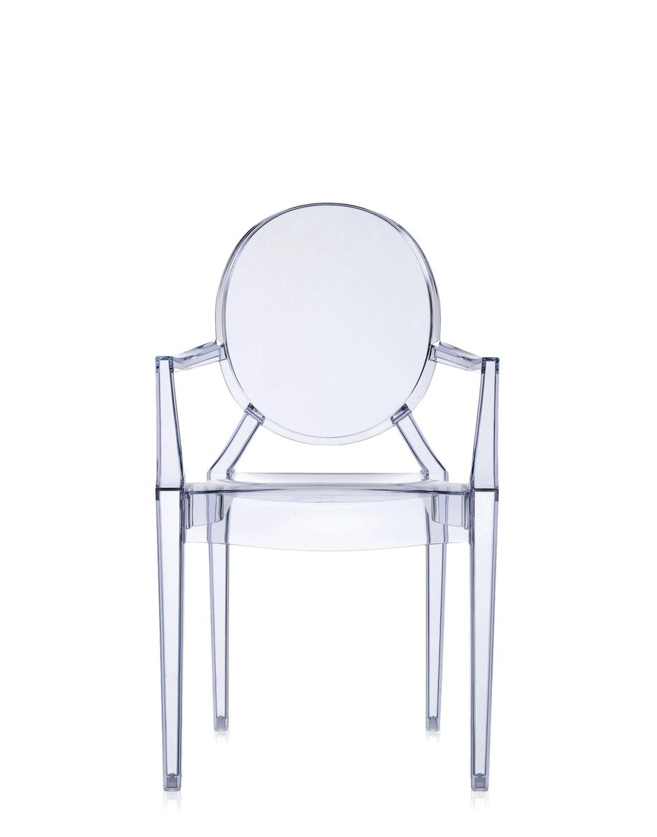 Louis Ghost is a daring example of the injection of polycarbonate into one mold, making it the world's most courageous chair. Inspired by the Louis XV chair, the Baroque idea, it has been reinterpreted by Philippe Starck to amaze, inspire and enchant. Despite its volatile and crystalline image, Louis Ghost is stable and strong, resistant to collisions and weather influences; and it can be stacked up to six pieces high. A very charismatic product with enormous aesthetic appeal, perfect for any environment, be it home or professional.