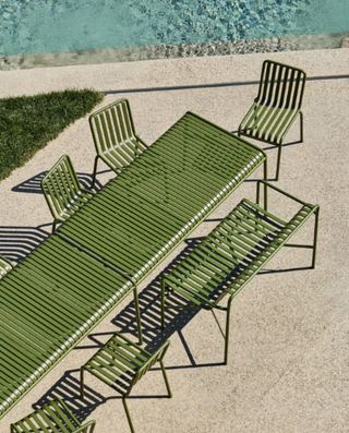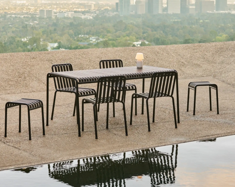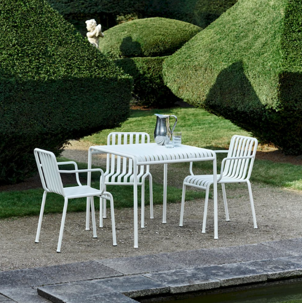The Palissade table by HAY is a strong yet elegant table that will suit any outdoor space. Designed by Ronan & Erwan Bouroullec, this table exudes simplicity and strength. The subtle lines and symmetrical design create a modern, timeless look that will fit effortlessly into both green gardens and urban patios.