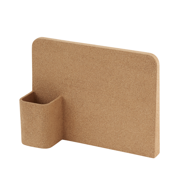 We had this childhood memory of a cork notice board as a magical surface on which we could pin photos, souvenirs or leaves to create our own little universe, rearranging the objects to create new atmospheres and reflect our mood at that moment. Designing the Story notice board was about translating this emotion into a new perspective by combining the warmth of cork with a modern yet timeless expression. The Story notice board brings subtle feelings of Scandinavian design into any work or creative context, whether in the home office, a child's room or the workplace. Produced in cork, a material derived from the renewable bark of cork oaks, the Story notice board is completely recyclable.