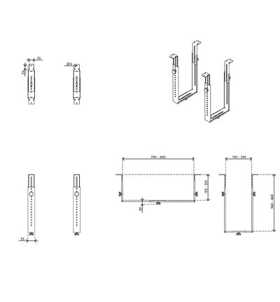 - Max. CPU dimensions: horizontally between 350 - 600 mm wide and 155 - 310 mm high