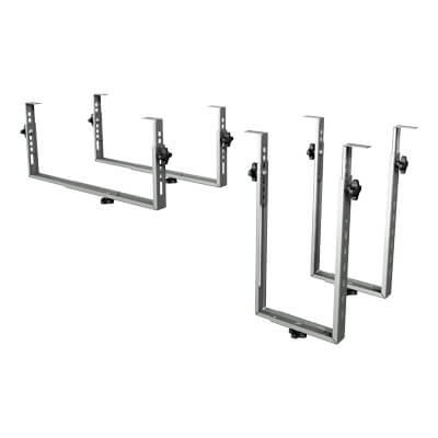 This computer holder consists of computer mounting brackets that mount under a desktop to keep a computer off the floor. This way, the computer collects much less dust and is easier to access and maintain. The brackets can be mounted horizontally or vertically to support a wide range of computers.