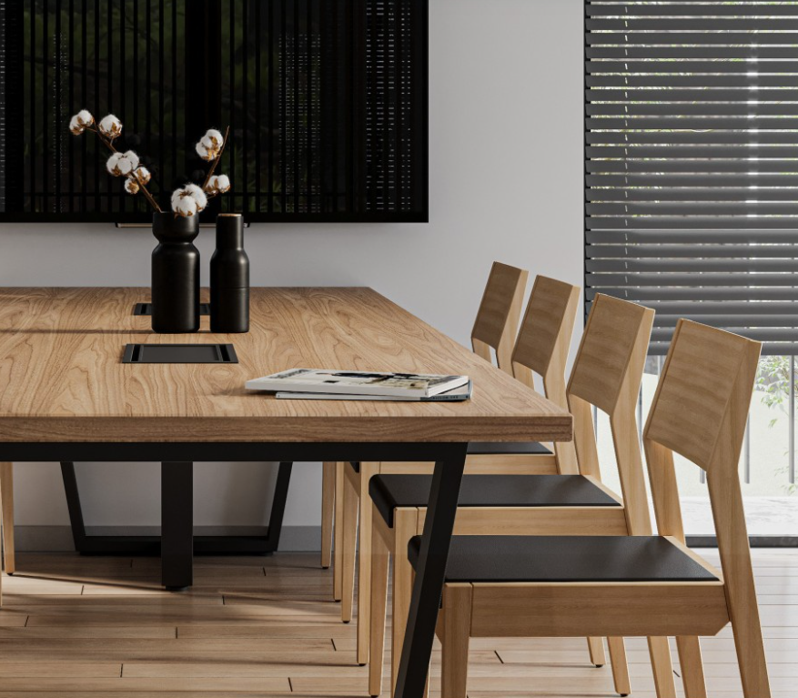 This collection is designed for intensive use in cafés, restaurants, staff canteens and other public areas where comfort and aesthetics matter. The sled base prevents wall damage, and one model is stackable up to four units. Ideal for flexible use.