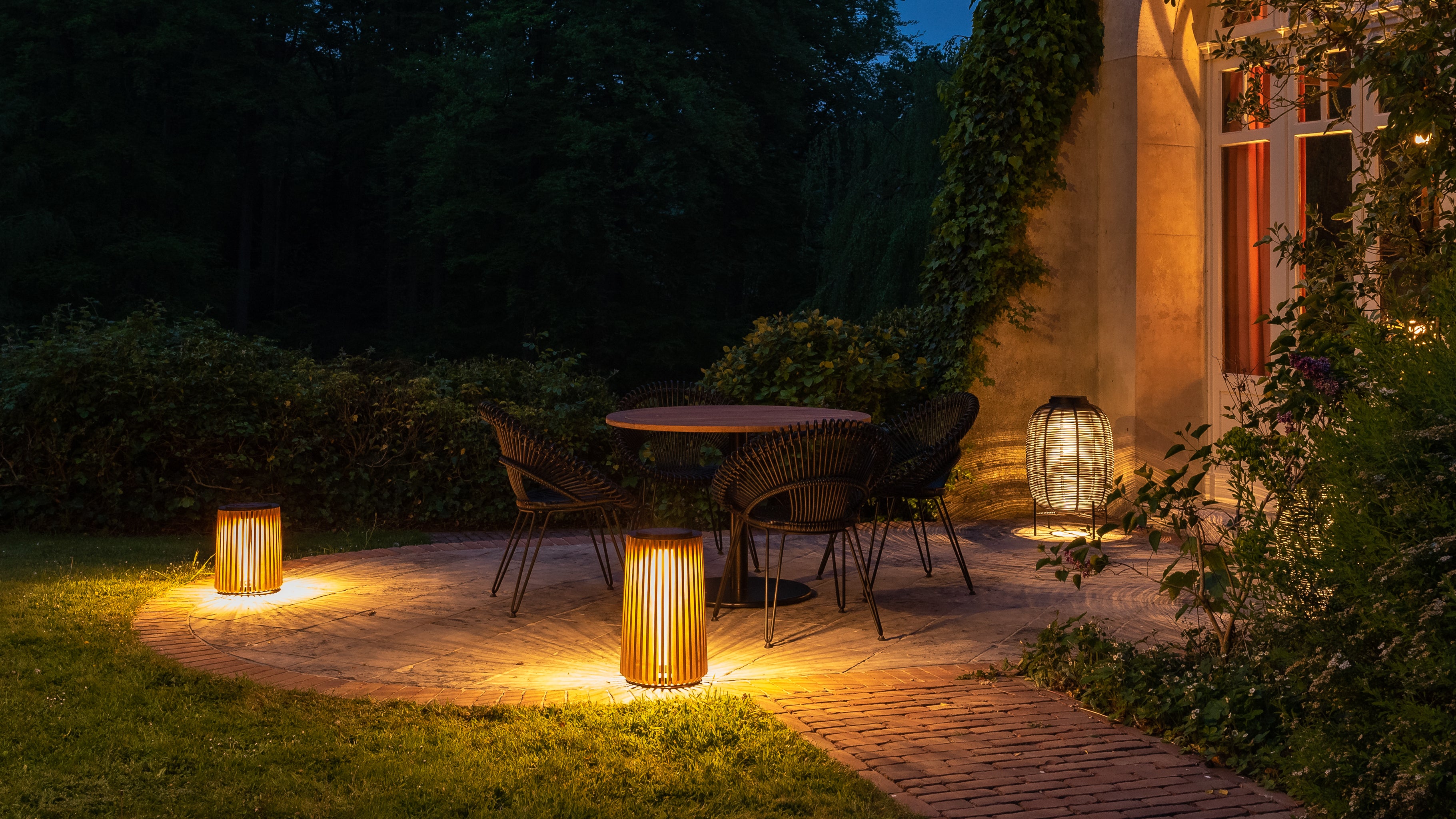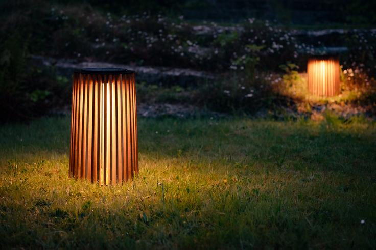 Dès la tombée de la nuit, le module LED intégré avec capteur de lumière active automatiquement une douce lumière chaude (2700 K). Sa conception ouverte permet à la lumière de jouer avec élégance à travers la grille en bois – idéal pour un moment intime sur une terrasse ou pour éclairer discrètement une allée.