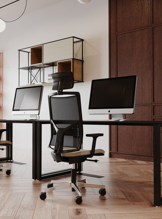 Les eleven | EL 103 noir offre un confort d'assise optimal grâce à la combinaison d'un design ergonomique et d'une technologie moderne. Le dossier réglable et le support lombaire peuvent être facilement ajustés à votre position assise. Grâce à la housse en maille respirante, la chaise reste confortable, quelle que soit la saison. Vous pouvez configurer le fauteuil entièrement selon vos souhaits, avec ou sans appui-tête, et choisir parmi différentes couleurs pour l'assise.