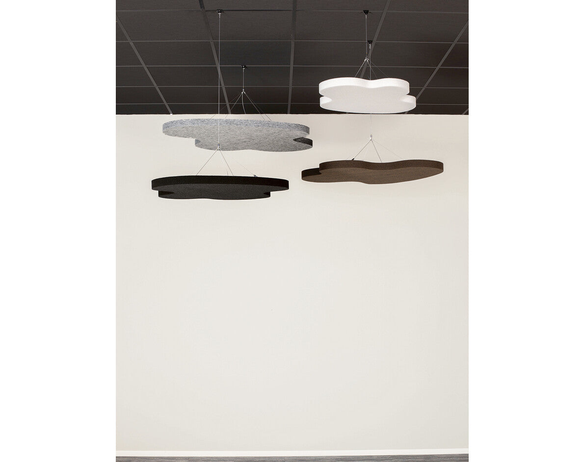 Matériau insonorisant efficace en forme de nuage pour montage au plafond. L'épaisseur est de 50 mm.