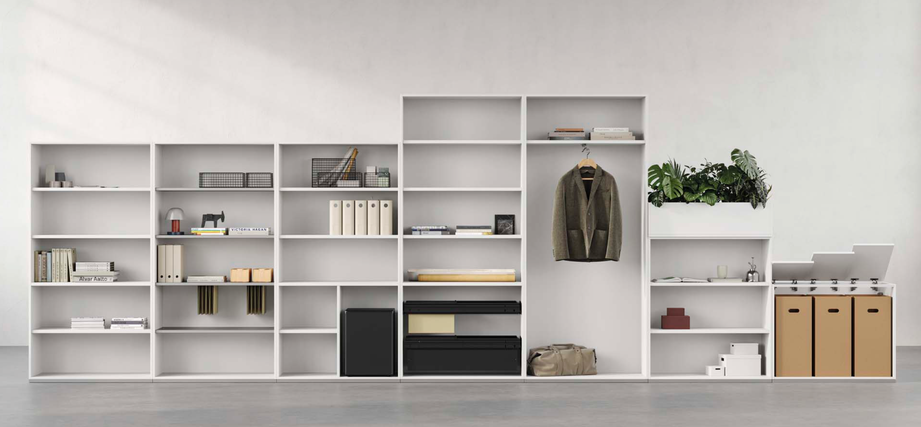 Les armoires Passepartout sont entièrement configurables et peuvent être adaptées au style, à la fonction et à l’espace souhaités – des meubles bas compacts aux systèmes d’archivage hauts.