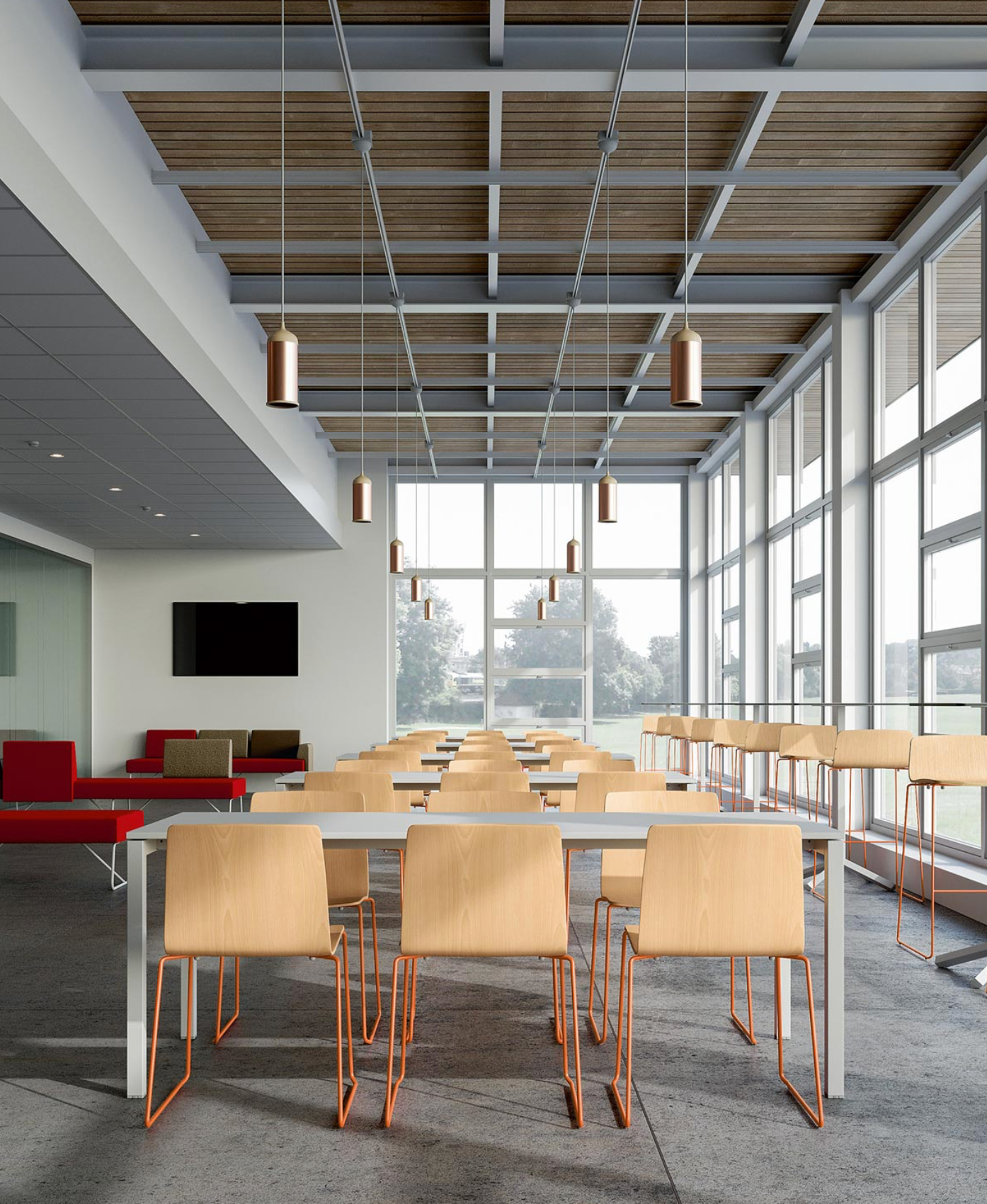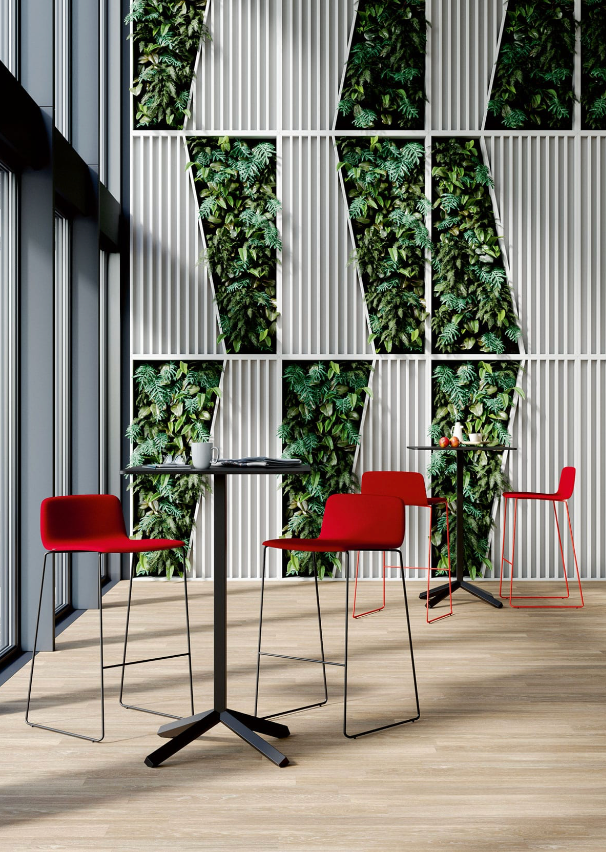 Outre le tabouret, la collection comprend également la chaise en métal, la chaise lounge, la chaise en polypropylène (revêtue ou non), la chaise en bois et la version en bois rembourrée. Tous les modèles sont configurables, afin de s’adapter facilement au style et à la fonction souhaités.