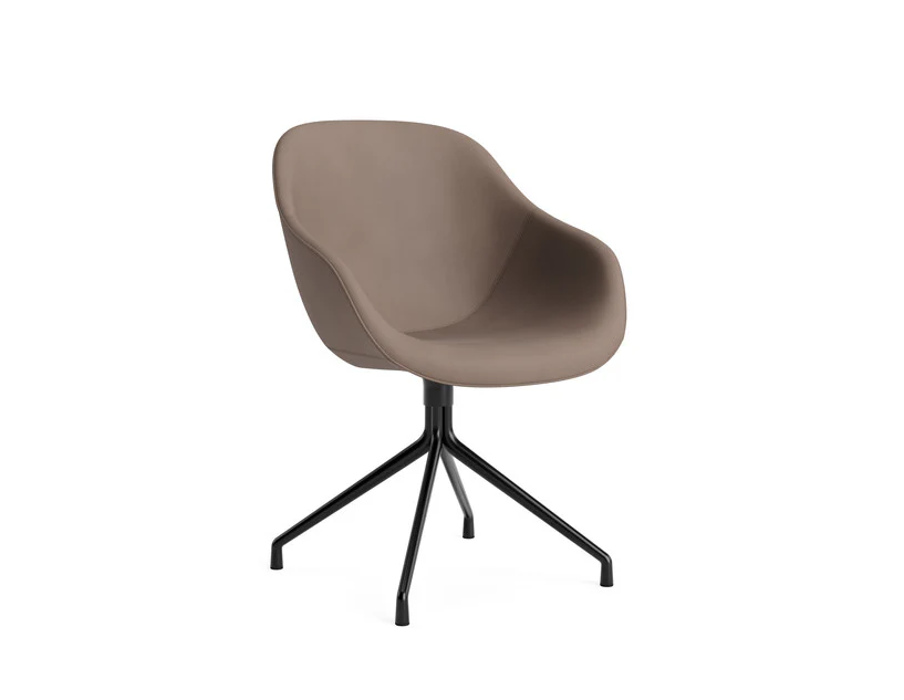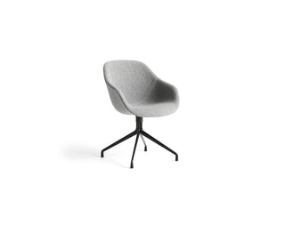 About A Chair 121 a un aspect légèrement plus formel que les autres variantes de la série avec une base rotative en aluminium. La chaise conserve le même dossier haut et l'assise spacieuse qui caractérisent la série. La conception a une base fonctionnelle avec des pieds qui s’étendent vers l’extérieur à partir du centre. La base est disponible en aluminium poli ou thermolaqué noir et la coque est disponible en différentes options de revêtement. Cela offre d'innombrables combinaisons de conception, rendant cette série polyvalente dans divers environnements professionnels, publics et privés.
