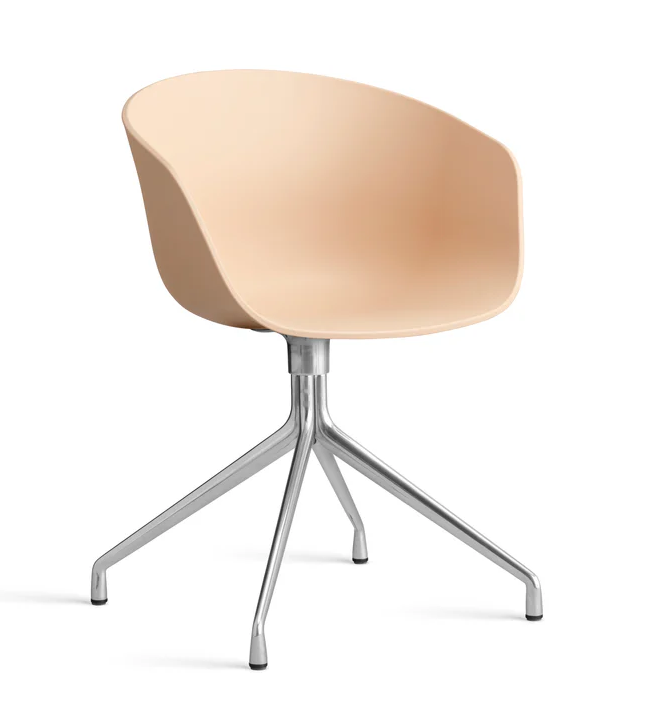 Avec une base pivotante en acier, la About A Chair AAC20 donne un look plus formel que ses homologues en bois de la série. La coque incurvée emblématique crée une silhouette douce et unifiée et des pieds qui s'étendent à partir de la base centrale. La base pivotante en fonte d'aluminium est disponible en finitions polies ou thermolaquées et la coque en polypropylène est disponible dans une gamme de couleurs et d'options de revêtement, permettant une multitude de combinaisons de design qui rendent cette gamme si polyvalente.