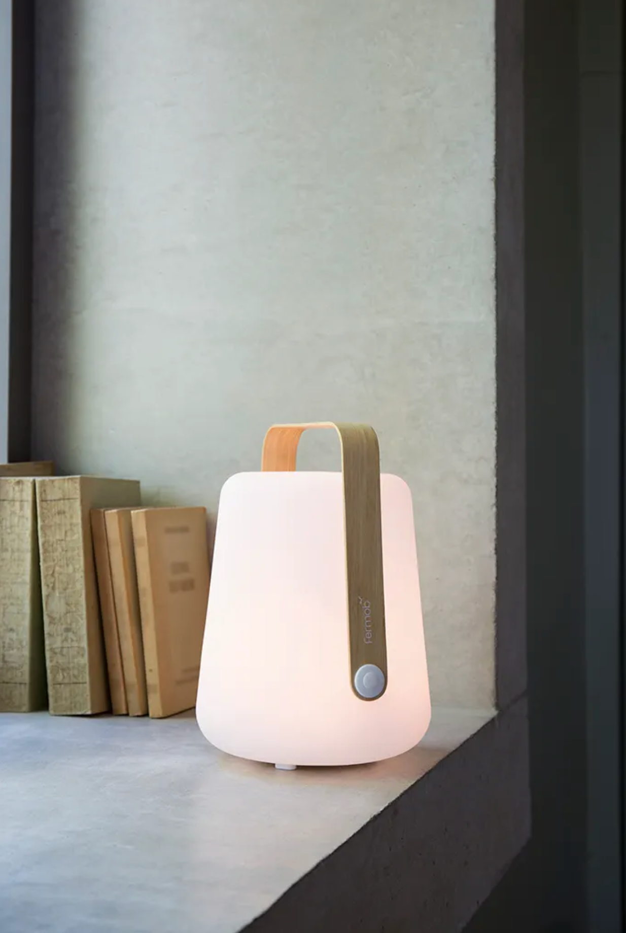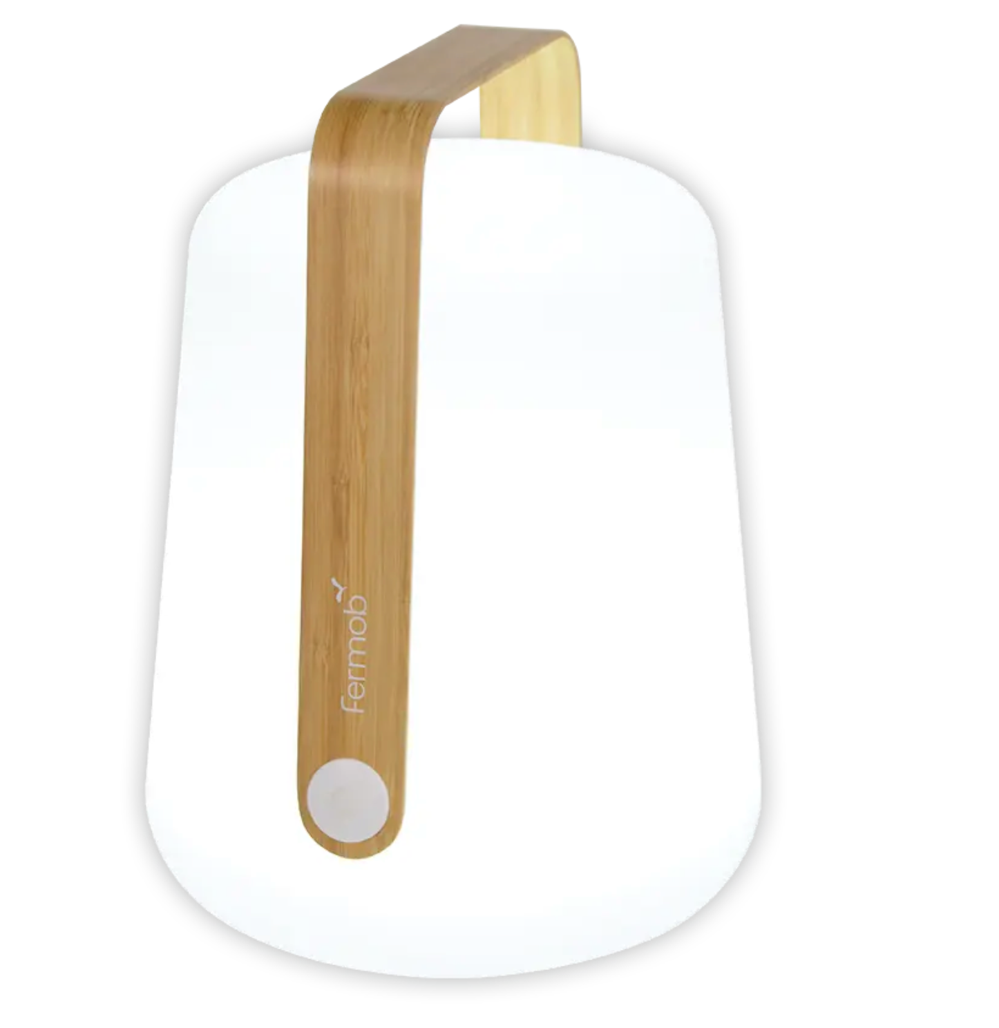 L'emblématique lampe Balad H25 de Fermob est désormais disponible dans une élégante version en bambou pour un usage intérieur. Cette lampe design, nomade et sans fil, allie matériaux naturels et confort moderne. La poignée en bambou, inspirée des écouteurs, remplace le support classique en aluminium et apporte une touche chaleureuse et écologique à tous les intérieurs.