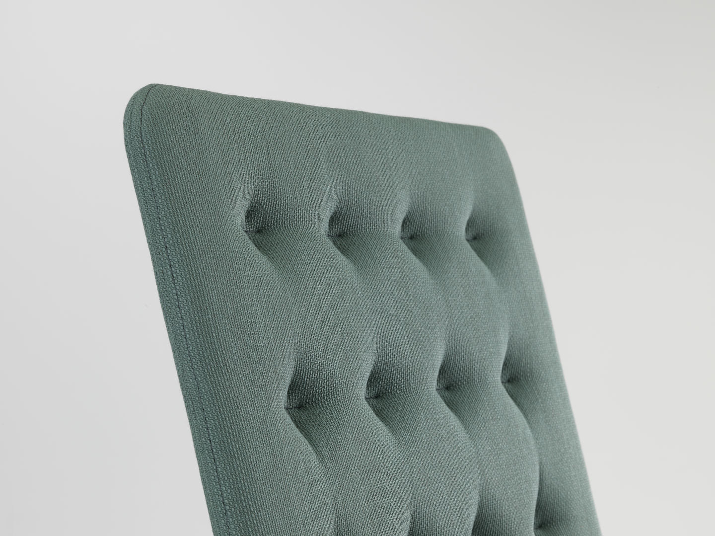 - L'assise et le dossier sont disponibles en différents tissus ou cuir.