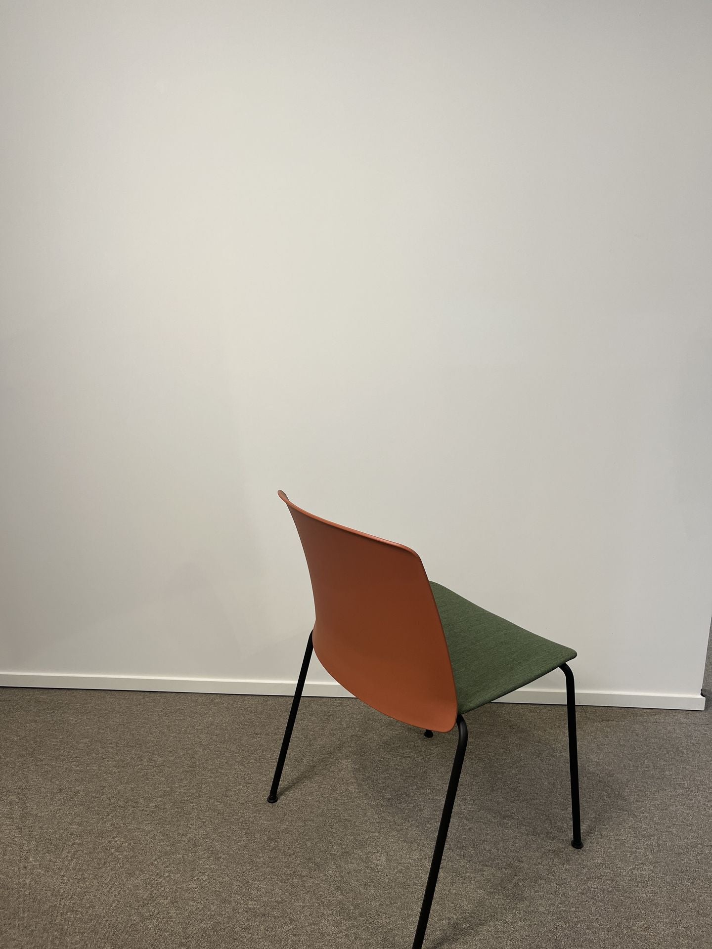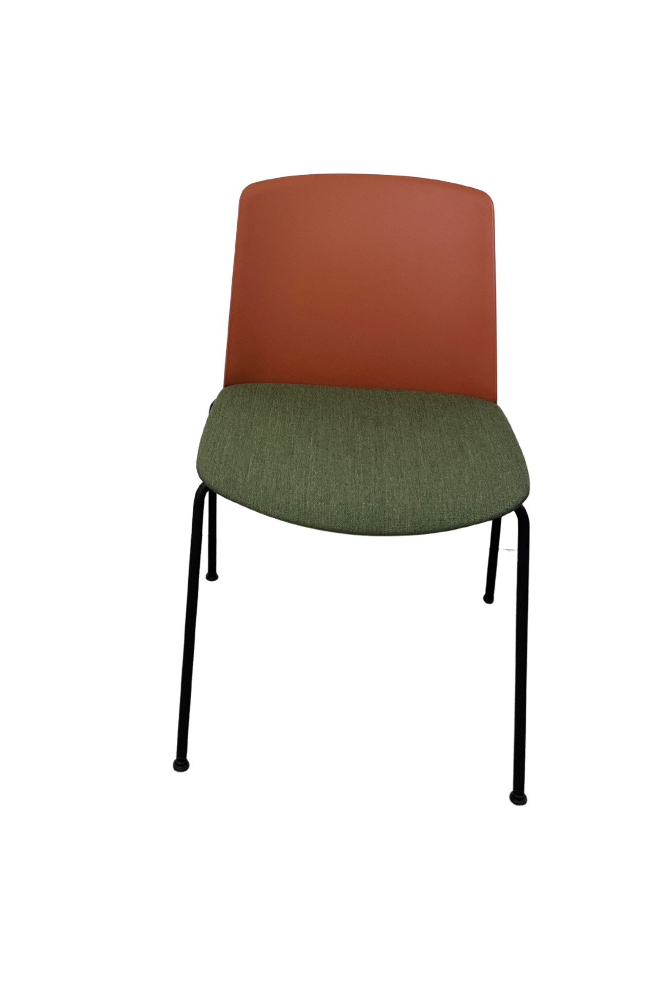 Deze strak vormgegeven stoel combineert comfort met minimalistisch design. Dankzij het stabiele vierpoots onderstel van verchroomd of gepoedercoat staal past de stoel perfect in professionele omgevingen zoals vergaderruimtes, horeca of publieke ruimtes. De zitting en rug zijn volledig gestoffeerd. De bekleding is zonder lijm aangebracht, waardoor deze eenvoudig vervangbaar is door technisch personeel.