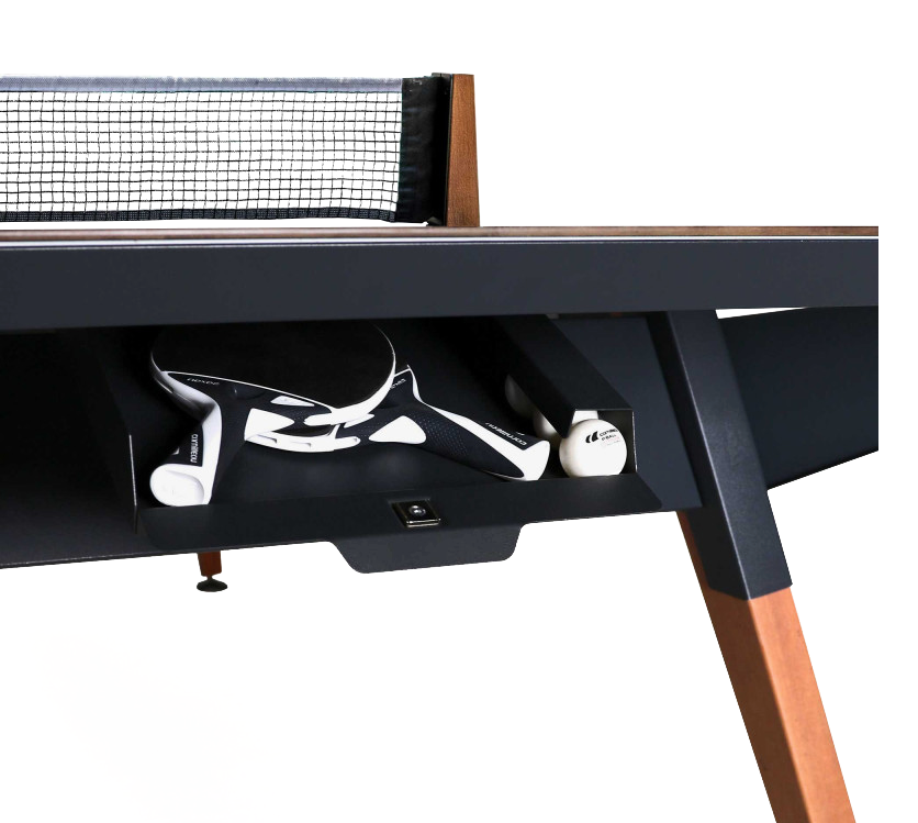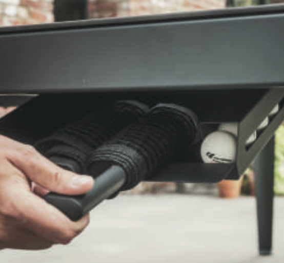 De Hyphen pingpongtafel is een perfecte combinatie van sportiviteit, design en functionaliteit. Ontworpen voor zowel binnen- als buitengebruik, biedt deze tafel een hoogwaardige speelervaring én de mogelijkheid om omgetoverd te worden tot een stijlvolle eettafel voor 8 tot 10 personen. Dankzij de robuuste staalconstructie, het HPL-speeloppervlak en slimme opbergvakken is deze tafel zowel praktisch als elegant. Een tafel die moeiteloos elk moment van ontspanning of samenzijn naar een hoger niveau tilt.