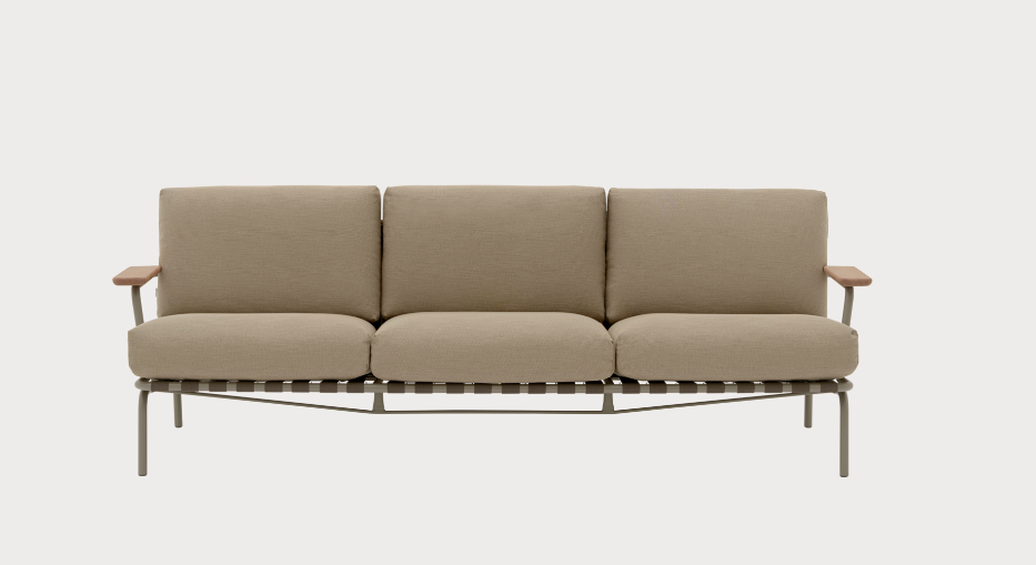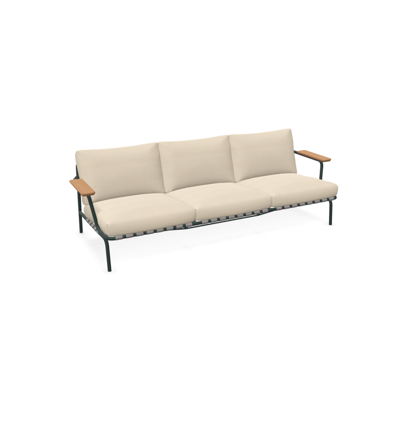 Le Le canapé d'extérieur Settle vous invite à la détente. Avec sa structure en acier aérée et bien pensée et ses pneus apparents, ce canapé d'extérieur allie élégance et robustesse. Les accoudoirs en acajou sapelli certifié FSC™ apportent une touche chaleureuse et naturelle, palpable et visible dans chaque ligne.
