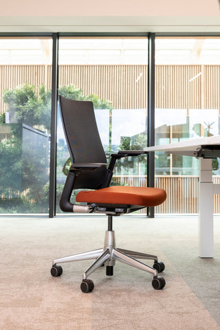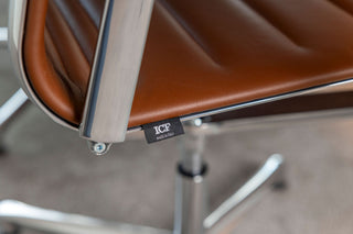 Naast losse kussens in twee kleuren mochten we ten slotte ook nog de prachtige en prestigieuse VITRA GEX Grand Executive Highback lederen bureaustoel in cognackleur leveren voor het hoofdgebouw. De statige stoel met armsteunen straalt waardigheid uit. Deze zachte, uiterst comfortabele en kwalitatieve bureaustoel op wieltjes en met aanpasbaar nekkussen, is een ontwerp van Antonio Citterio.