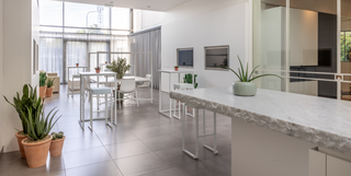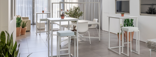 Welkom bij onze ‘Shop the Look’! Laat je inspireren door de gezamenlijke eventruimte, een stijlvolle plek met eenvoud en kwaliteit. Dit ontwerp is afgewerkt in strak wit en voorzien van hoogwaardige meubelen van Flexfurn, Fantoni en Interstuhl.