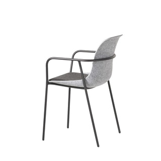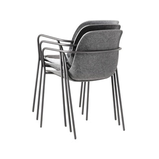Deze slanke stoel is een elegante, stapelbare stoel, geïnspireerd op het ontwerp van de Felt-stoel. Het slanke buisframe volgt nauwkeurig de organische lijnen van de vilten zitschaal, wat niet alleen zorgt voor een esthetisch aantrekkelijke uitstraling, maar ook de stoelen compact stapelbaar maakt. De zitting biedt optimaal comfort dankzij het zachte materiaal en de ergonomische vorm. De Felt Fine maakt deel uit van de duurzame Felt-familie, samen met de Felt-stoel en de Felt High.