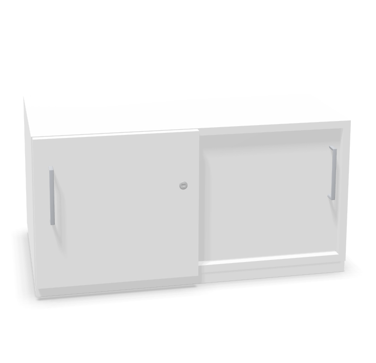 König + Neurath ACTA.PLUS schuifdeurkast, losse uitvoering. Afmetingen: 800 x 450 mm, hoogte 405 mm (1 OH). Corpus en front in zuiver wit kunststof, onderdeel van de Kunststof/Trend collectie. Voorzien van aluminiumkleurige, hoekige beugelgreep en sokkel van 30 mm. Geen zichtachterwand, zijpanelen, glijders, wielen, frame of verbindingsboringen.