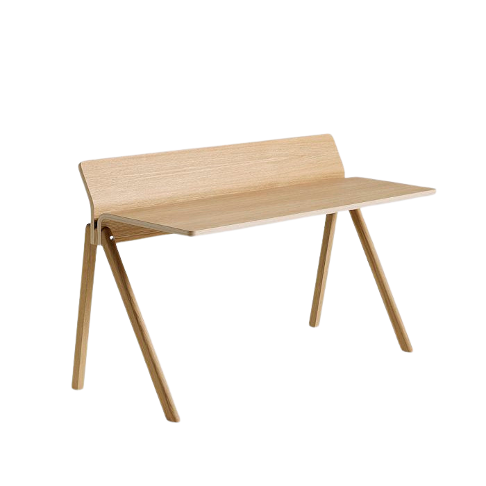 Met dezelfde schuin geplaatste poten als de rest van de serie, heeft het tafelblad van het Moulded Plywood Desk CPH190 een split aan de achterkant van de tafel. Dit creëert een handige rechtopstaande rugleuning om notities en open boeken te ondersteunen, terwijl de rest als werkruimte dient. Dit zorgt niet alleen voor een compactere desk, maar verhoogt ook de functionaliteit. Ideaal voor thuisgebruik of op kantoor, is het bureau vervaardigd uit eikenhout met een heldere lak.