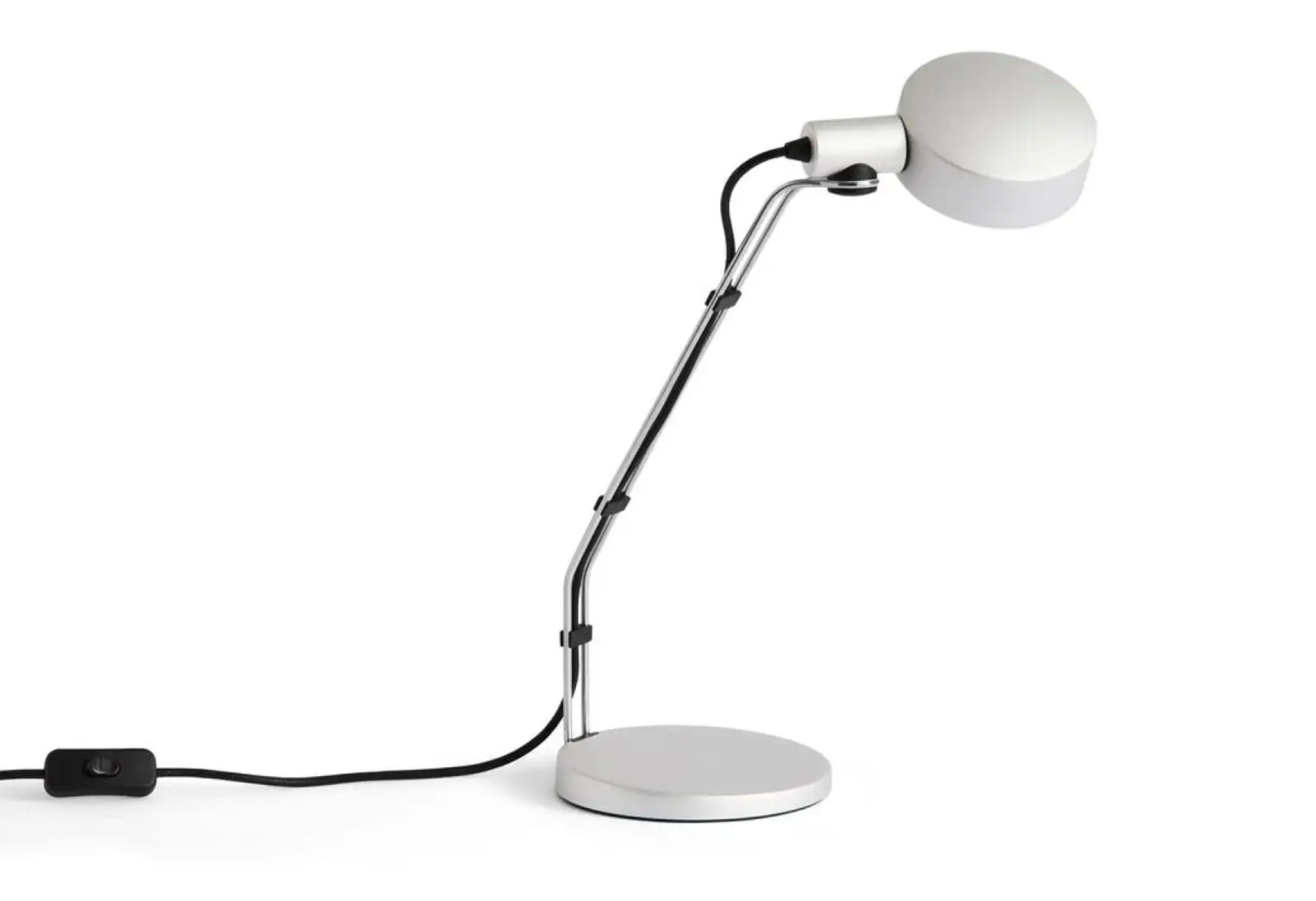 De Cupola Bureaulamp, ontworpen door John Tree, is een functionele én elegante werkverlichting met een puur, industrieel karakter. De ronde lampkop draait 360° en dankzij de kantelbare arm richt je het licht moeiteloos waar je het nodig hebt – zonder overbodige mechanieken.