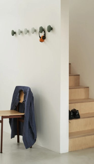 De Dots zijn een karakteristieke familie van haken die een vriendelijke toevoeging vormen aan elke muur. Met hun gladde, ronde randen behandelen ze je kleding met de grootste zorg. Ontworpen in meerdere maten en kleuren, kunnen de Dots in elke denkbare patroon worden gerangschikt om je persoonlijke smaak uit te drukken. En voel je vrij om er meer toe te voegen naarmate de tijd verstrijkt: de Dots verwelkomen elkaar graag aan de muur.