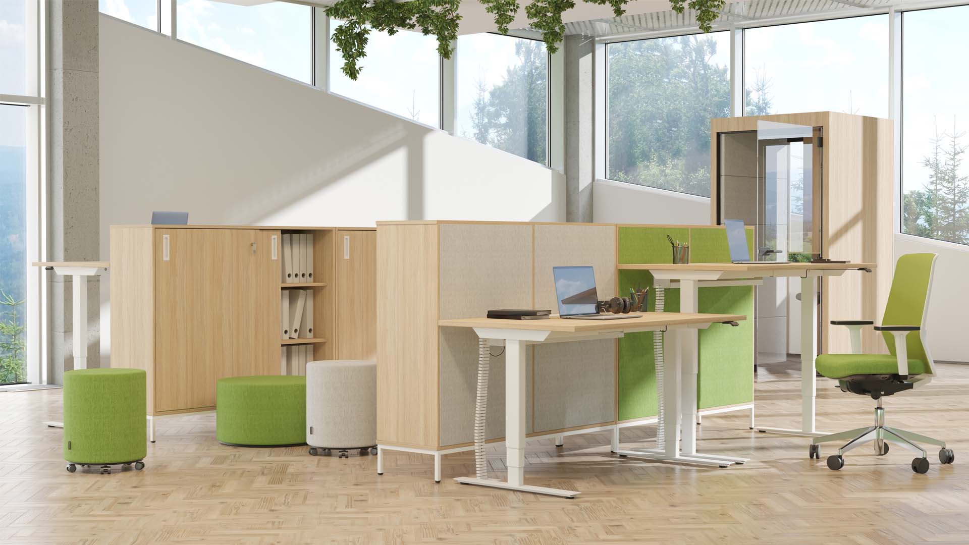 Het ergonomische en functionele zit-sta bureau systeem voor een efficiënte werkplek. EASY maakt het eenvoudig om een gezonde en productieve werkplek te creëren. Met ons brede scala aan oplossingen kiest u eenvoudig het perfecte zit-sta bureau voor uw individuele behoeften, of u nu kiest voor een bureau voor één persoon of koppelbare bureaus.