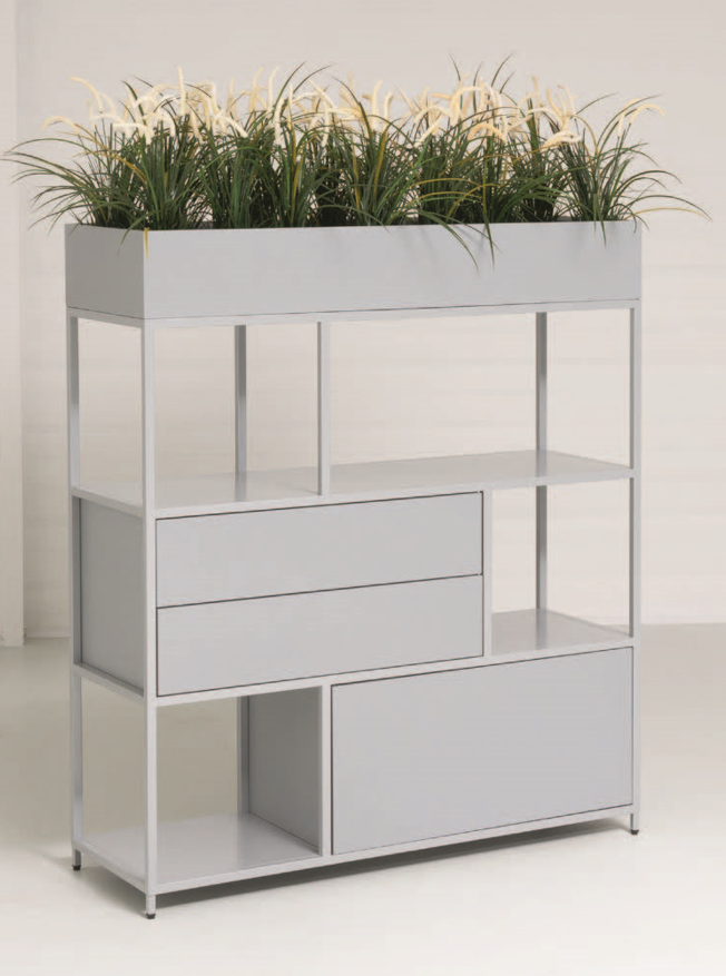 - Plantenbak: Voeg groen toe aan uw Flexwall met deze plantenbak op metalen sokkel, beschikbaar in melamine houtnerfstructuur of MDF gelakt.