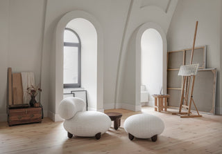 De Flock meubelcollectie is ontworpen voor een thuis dat een plek van comfort, rust en samenzijn is. Zachte vormen, natuurlijke materialen en aangename oppervlaktes creëren een warme en geborgen sfeer. "De meubels zijn subtiel rond, bekleed met zachte stoffen en hebben houten poten," zegt ontwerper Kateryna Sokolova. "We wilden meubels creëren die als familie voelen, intiem en geliefd." De naam "Flock" (zich verzamelen) benadrukt de rol van de collectie als centrale ontmoetingsplek in huis.