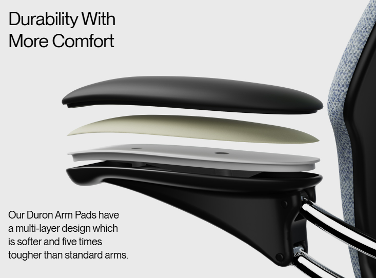 - standaard: verstelbare synchronous armleggers met Duron pads