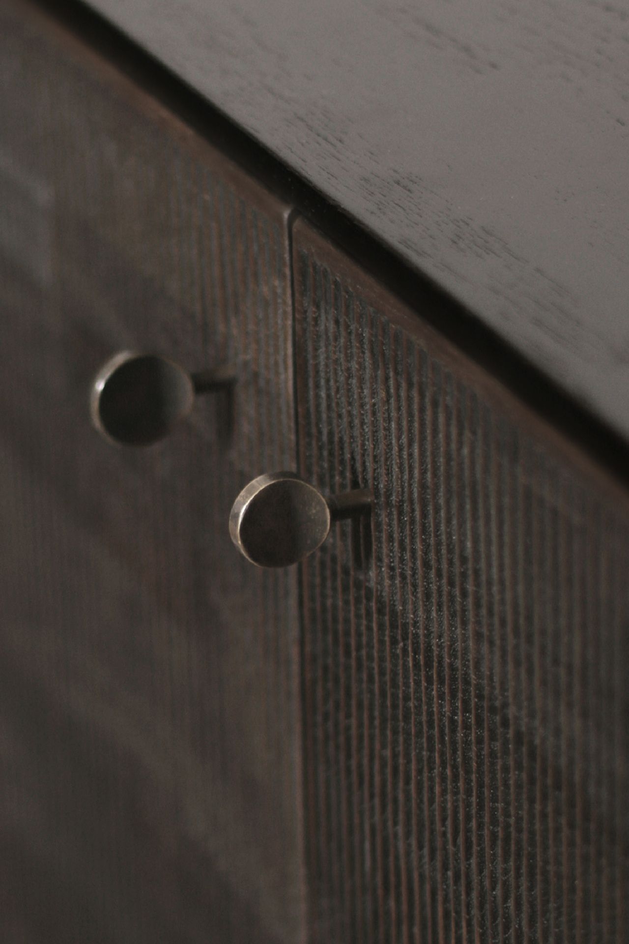 De Grooves buffetkast zit vol ritme en dynamiek. Elke lijn is met de hand gesneden, waardoor ieder stuk werkelijk uniek is. Kleine imperfecties zijn deel van het verhaal, sterker nog: ze geven Grooves nog meer karakter. Het resultaat is elke keer een lichtjes ander oppervlak, elk met zijn eigen ritme en dynamiek. Het prachtige donkere teak zit ook aan de binnenkant, waar u legplanken vindt om uw voorwerpen op te plaatsen.