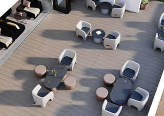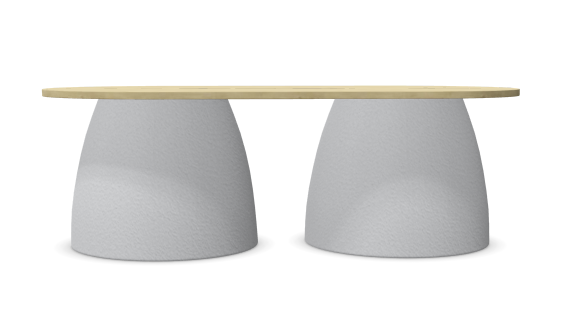 Deze ovale tafel, vervaardigd via rotomoulding-technologie, is ontworpen als aanvulling op de Gummy_bear loungestoelen. De duurzame kunststof maakt de tafel perfect geschikt voor buitengebruik, zoals op terrassen en in tuinen, maar ook voor binnenruimtes zoals lobby’s en ontspanningszones. Het speelse en moderne ontwerp sluit naadloos aan bij de rest van de collectie en voegt karakter toe aan elke omgeving.